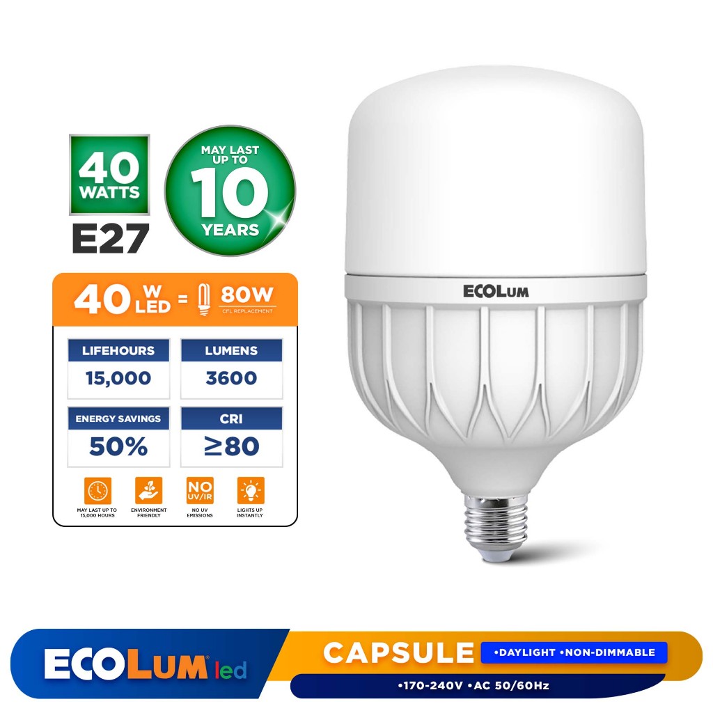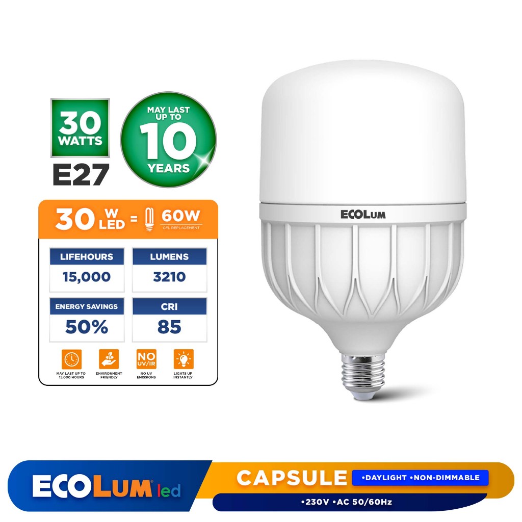 Ecolum LED Lamps Capsule E27 ( DAYLIGHT ) Non-Dimmable Long Life Service