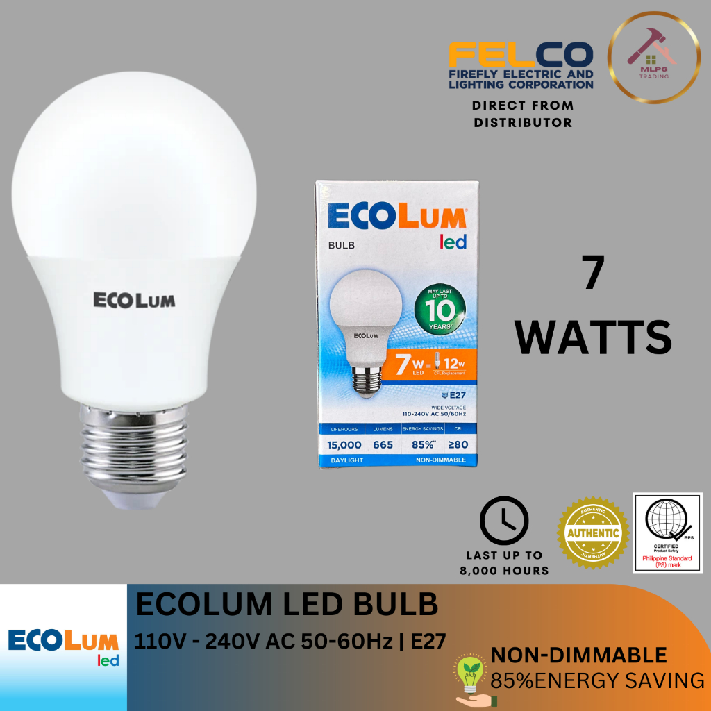Ecolum LED Light Bulb (Daylight / Warmwhite) 3W, 5W, 7W, 9W,11W, 13W, 15W