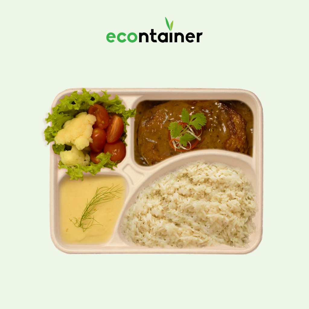 Econtainer T400 1270ml Sugarcane Bagasse 4-Compartment Tray [50pcs]