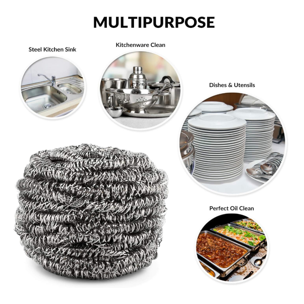 Ecoplanet 6pcs Steel Wool Scrubber Metal Scouring Scourer Scrubbing Wire Brush Pads