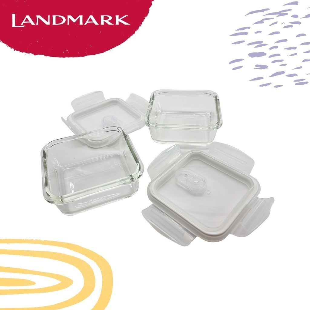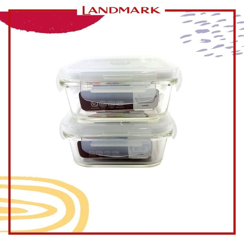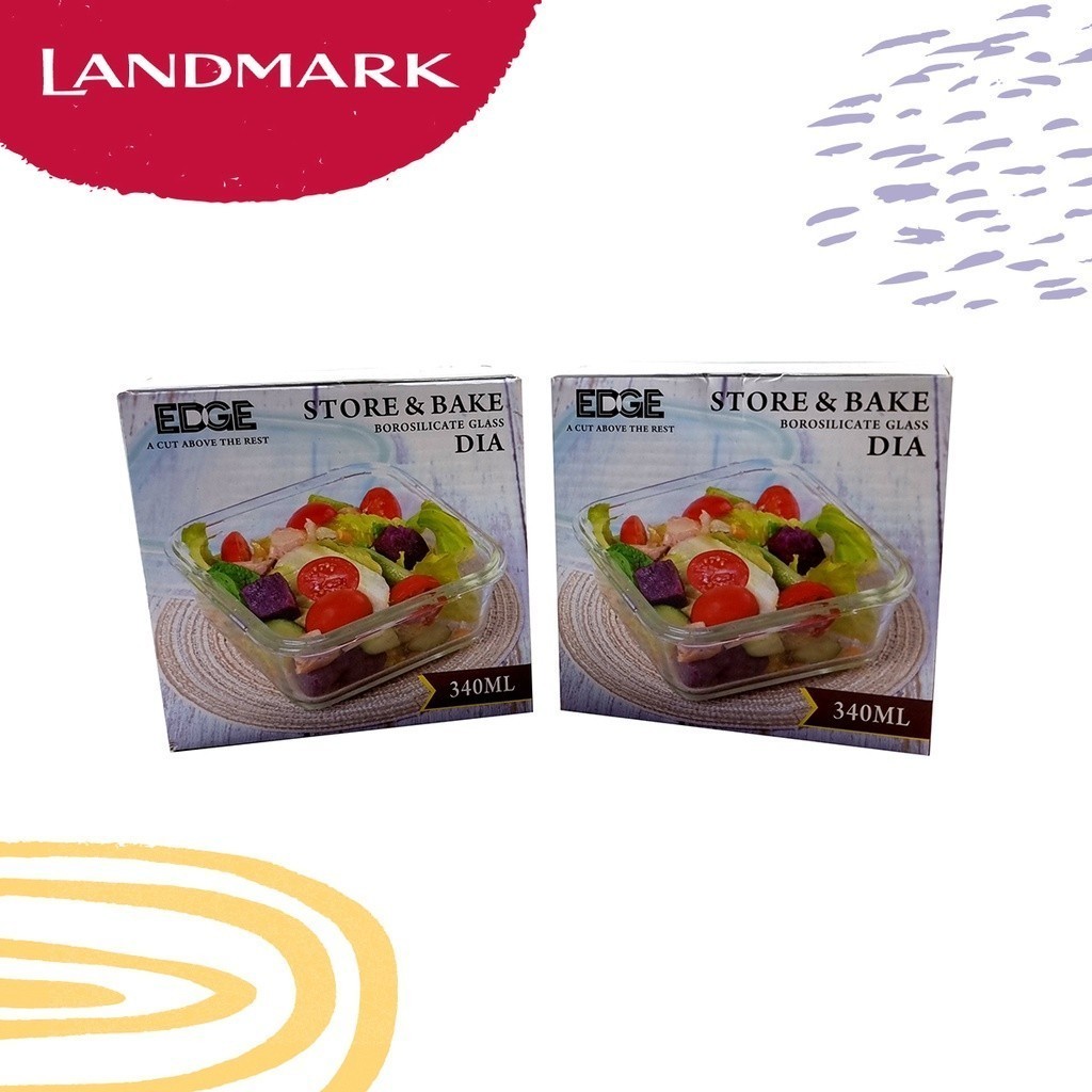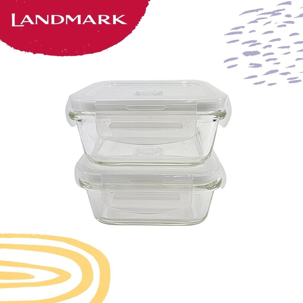 Edge Glass Square Food Keeper 340ml Set of 2 - Green 12.75 x 12.5 x 10cm