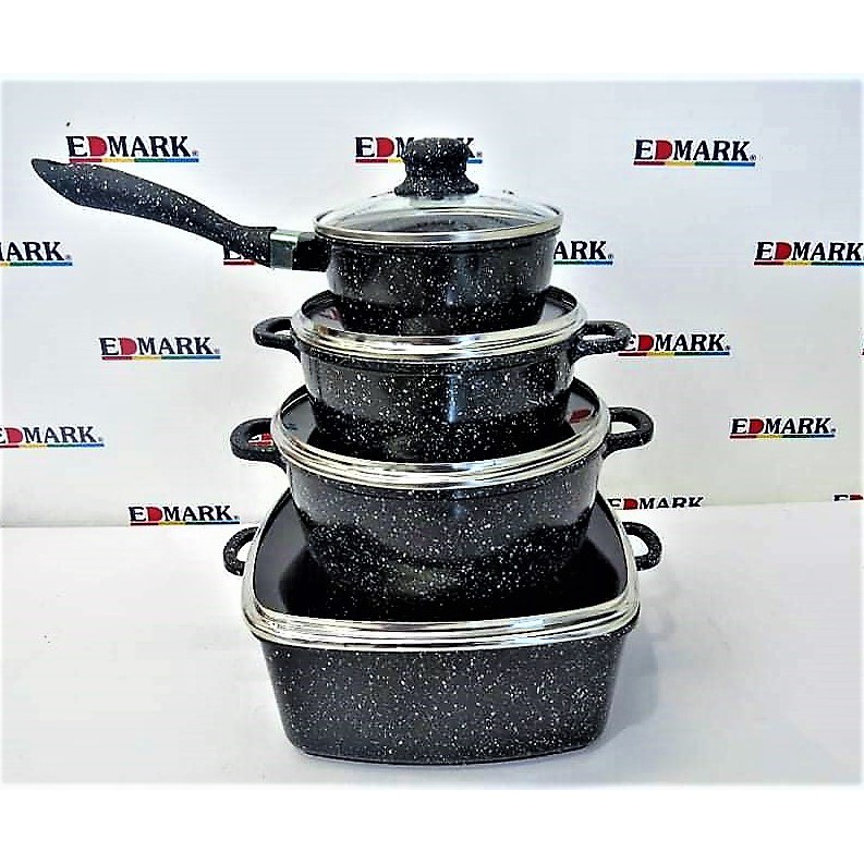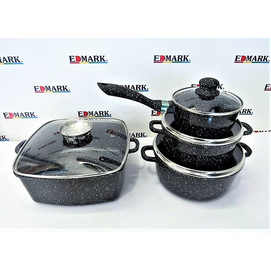 Edmark Marble Non-Stick Cookware Sets With Free Cover Granite Coating Black Series