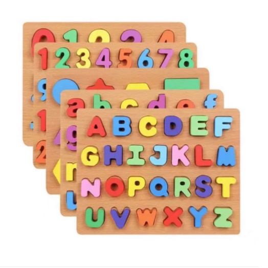 Educational Baby Learning Toys Wooden Alphabet ABC Numbers Puzzle Board Blocks for Kids