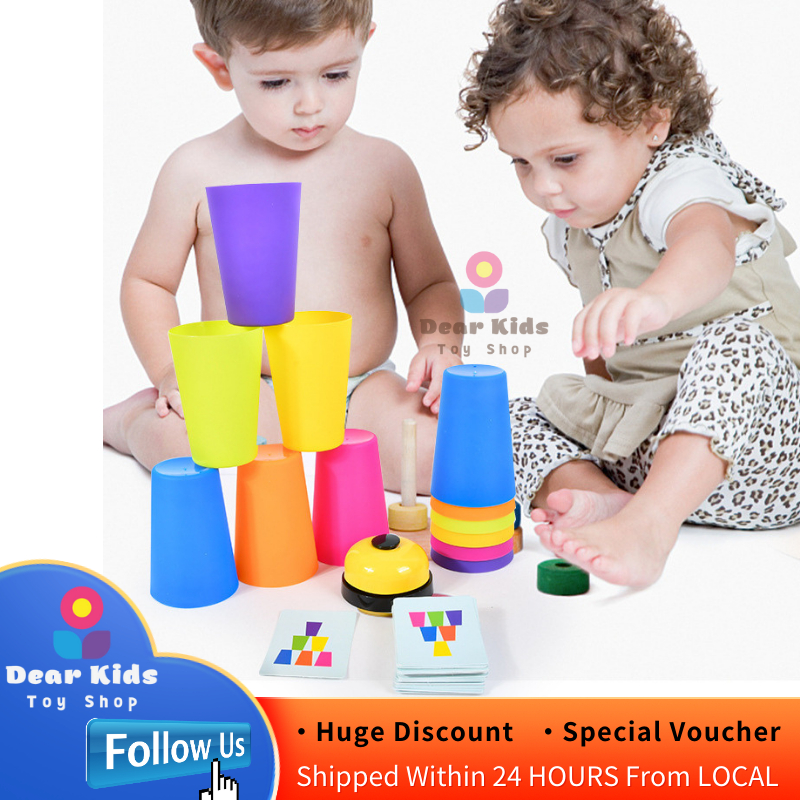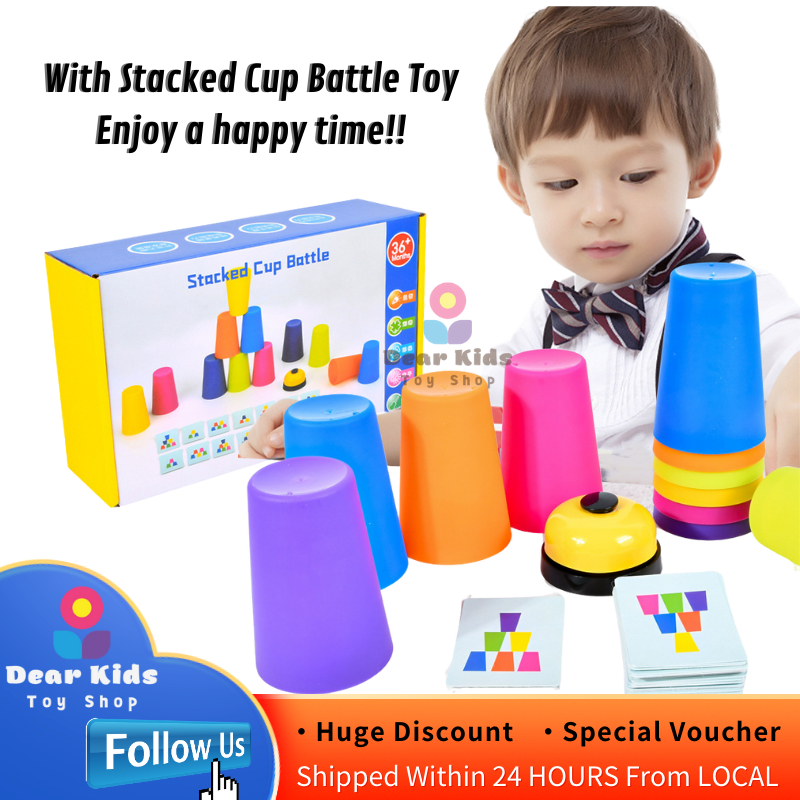 Educational Toys Double Battle Stacked Cup Game Toy with Cards Montessori Early Education Toys for Kids Two-players Stacked Cup Battle Game