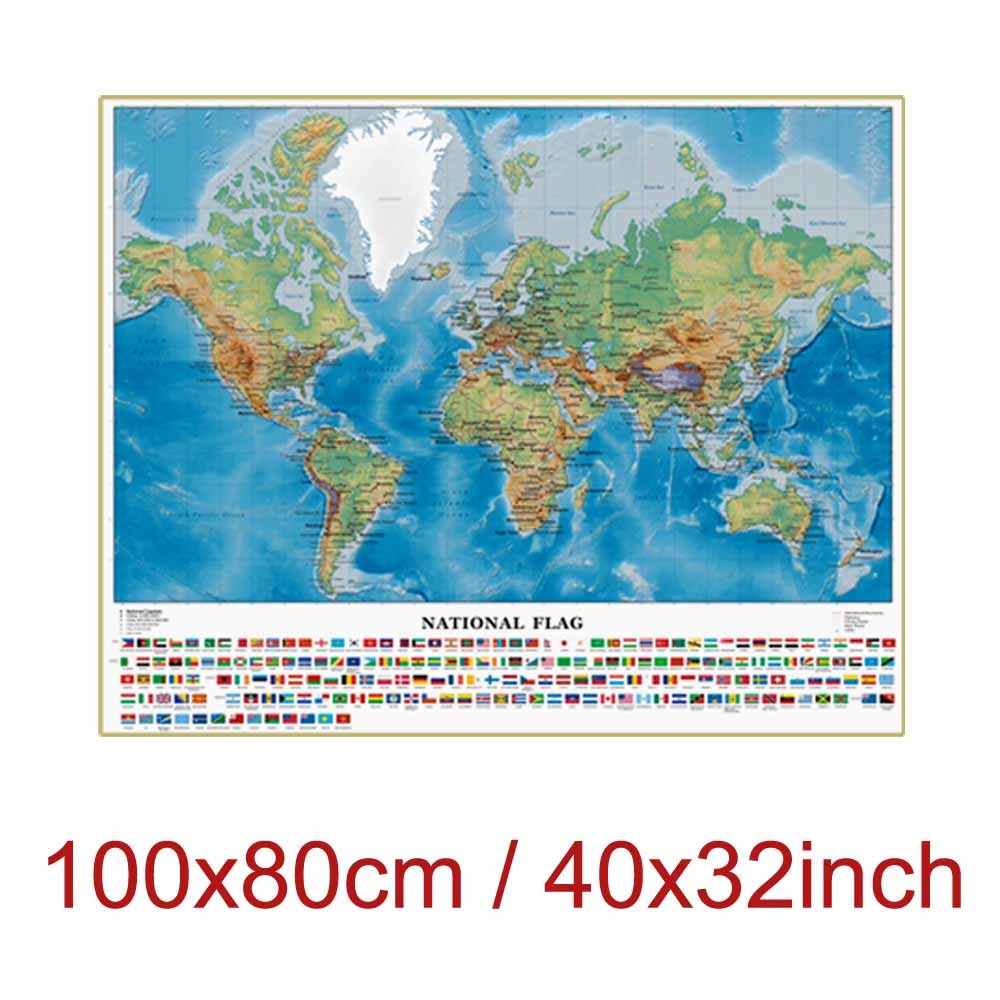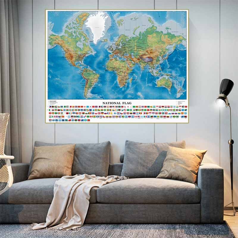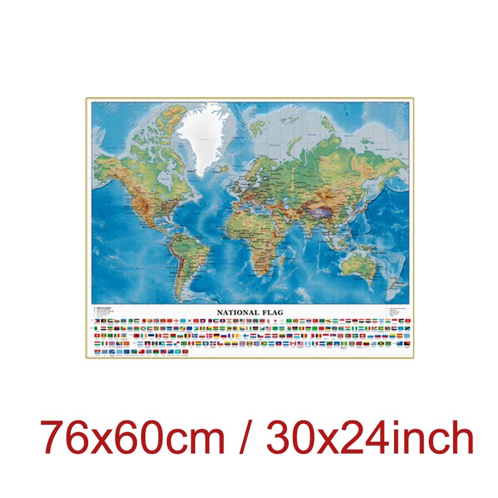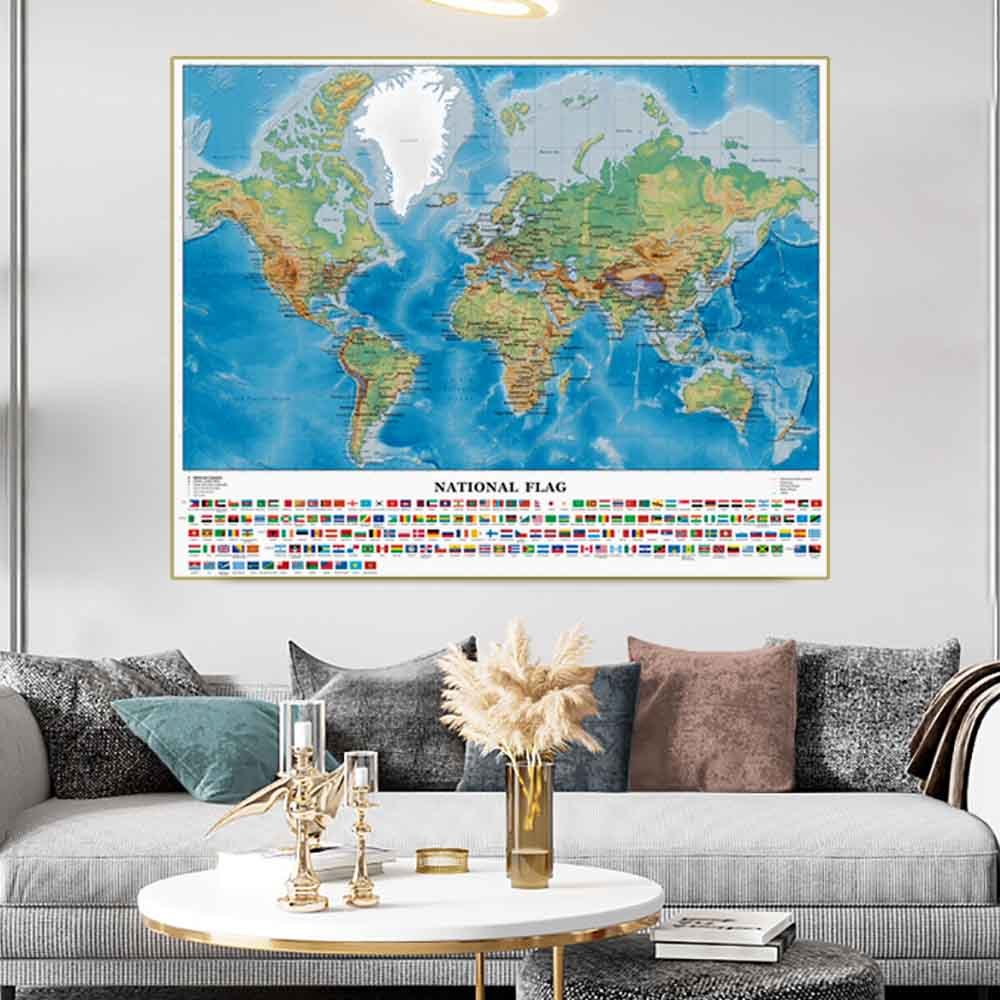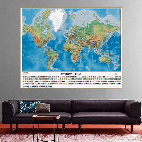 Educational World English Map Large Self Adhesive Poster HD Painting Wall Decor with National Flags
