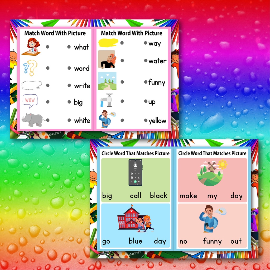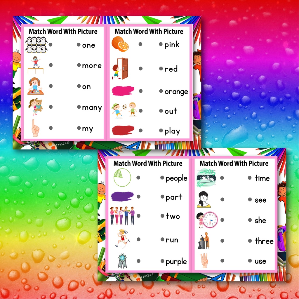 Educational chart activity word recognition laminated for kids 7pages back to back with marker