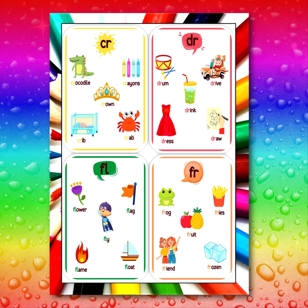 Educational chart reading beginning blend words for early learning 8pages laminated chart