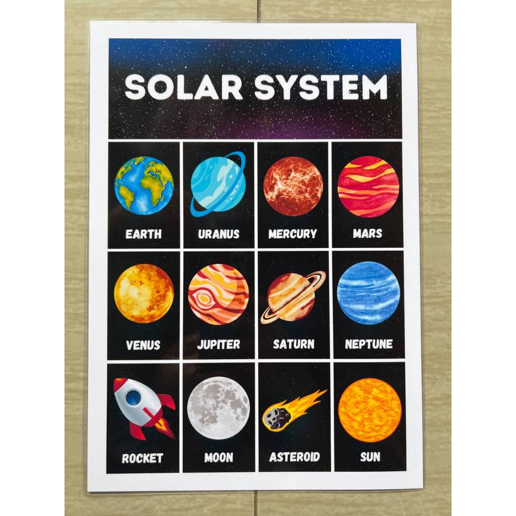 Educational learning materials for kids Laminated A4 Size Chart flash picture SOLAR SYSTEM PLANET