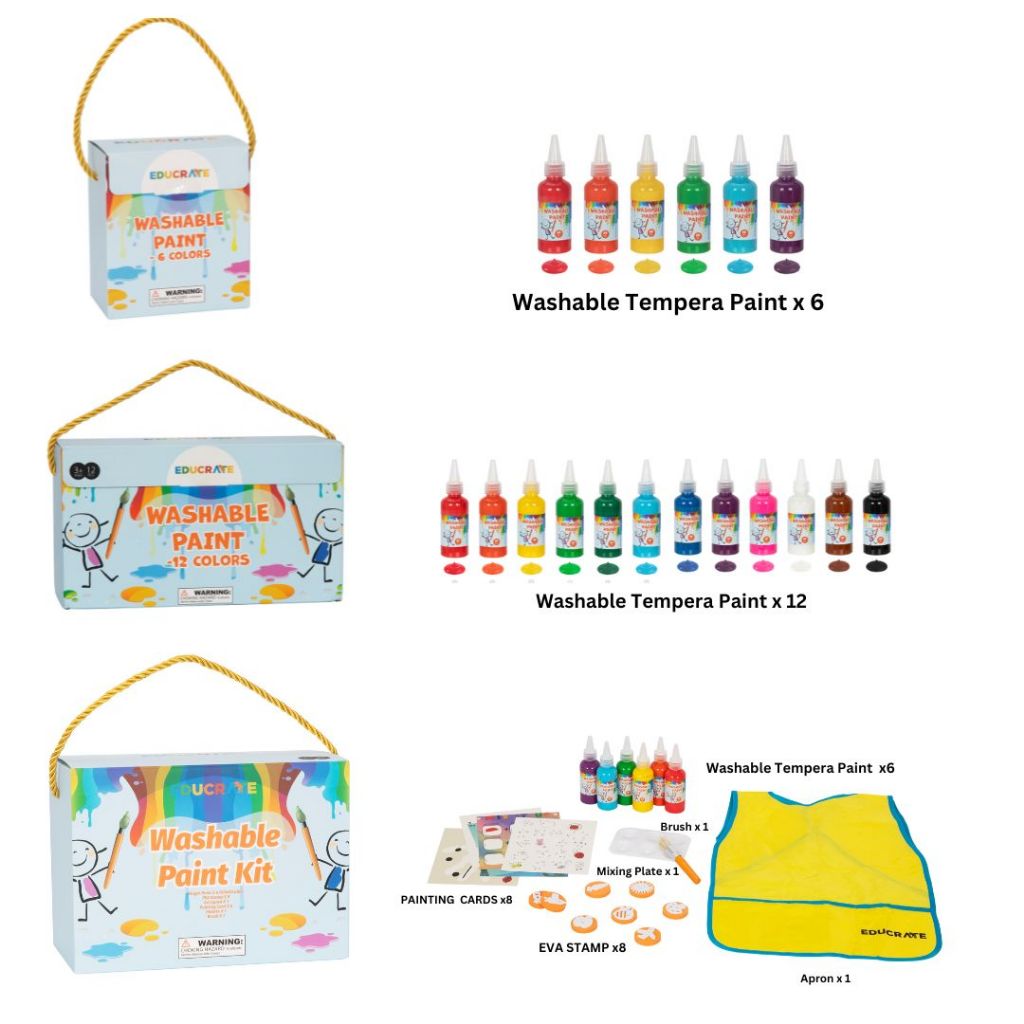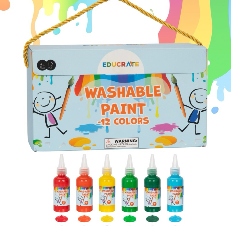 EducratePH 12 btls Non toxic washable paint for kids toddler finger paint acrylic tempera