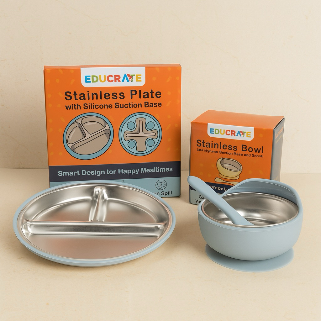 Educrateph Stainless Steel with Suction Sleeve Plate OR Bowl | Toddler Feeding Set | BLW