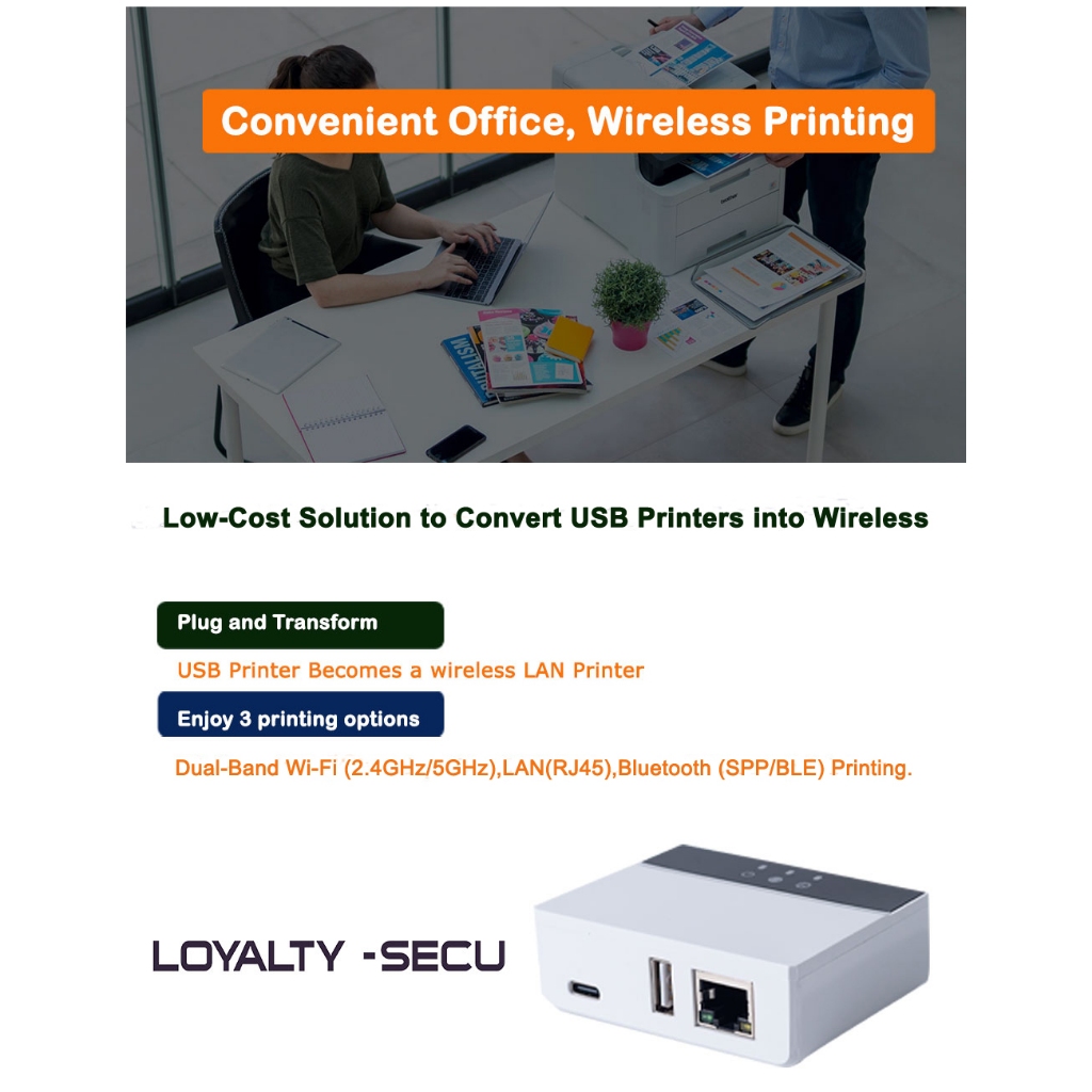 Effortlessly Upgrade Your USB Printer to Wireless with LOYALTY-SECU WiFi & Bluetooth Print Server