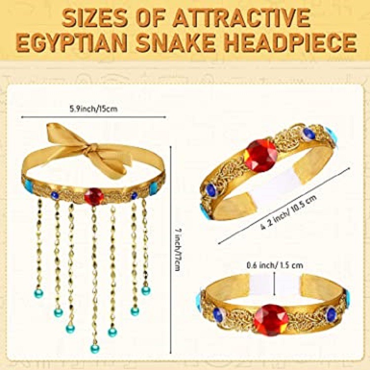 Egyptian Pharaoh Head Wear Headdress Golden Snake Color Jewelry Halloween Costume Accessories Necklace Suit