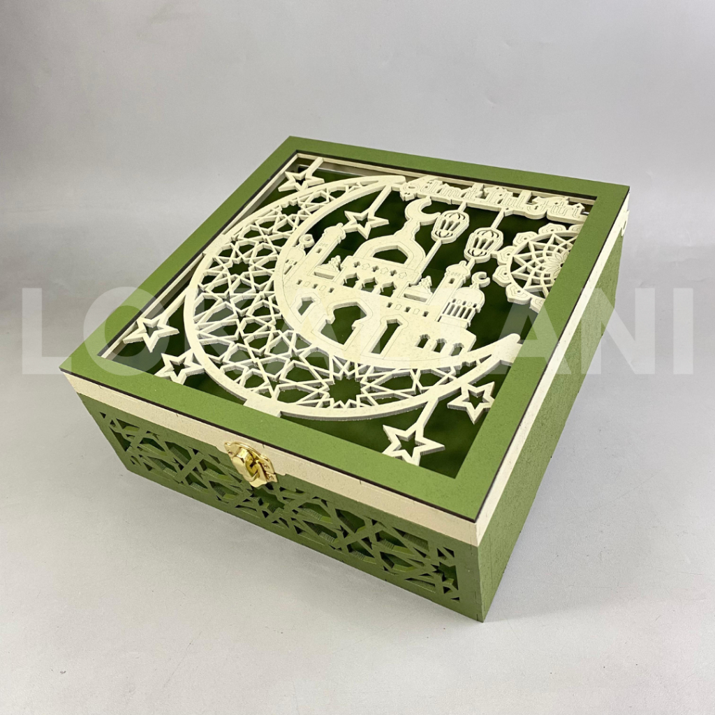 Eid MDF Box/ Hardbox Hampers Box/ Laser Cutting MDF Box/ Eid Hardbox 4 Jars 250Gr