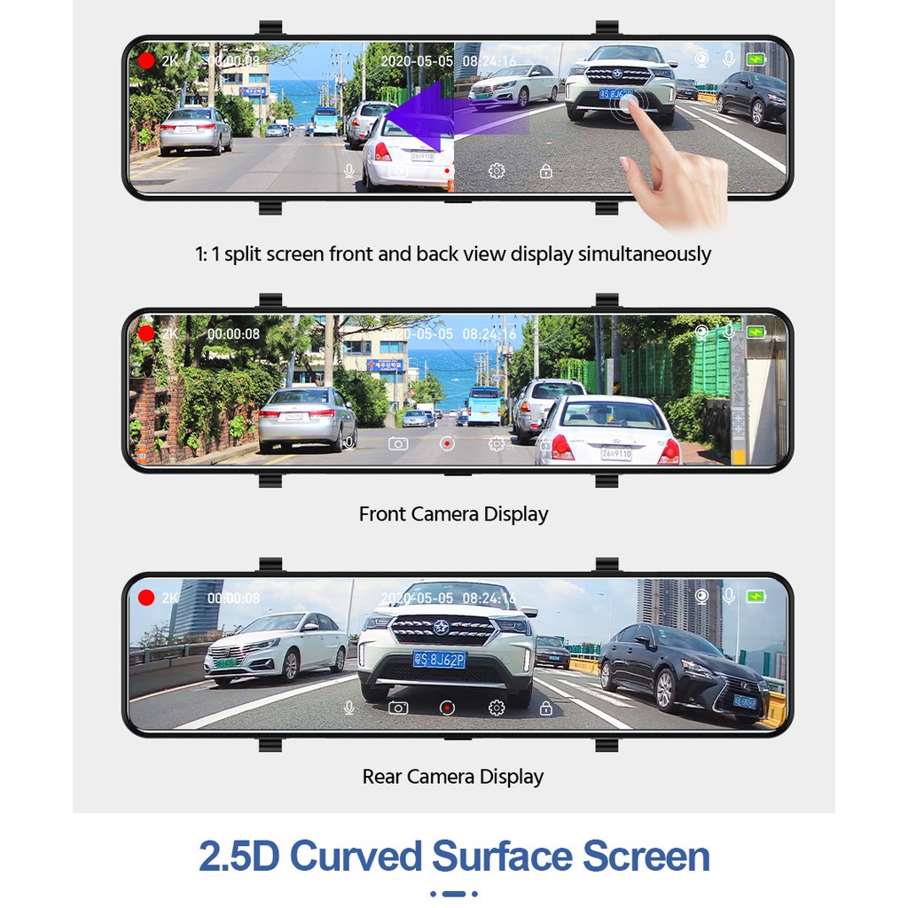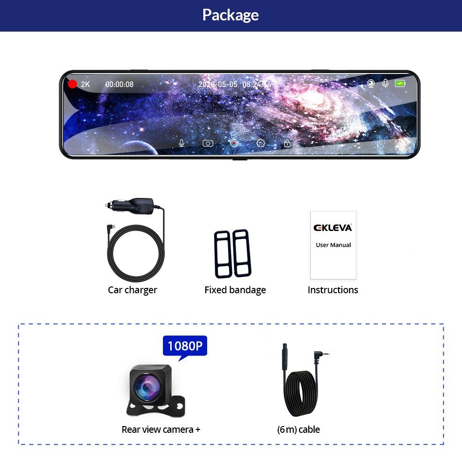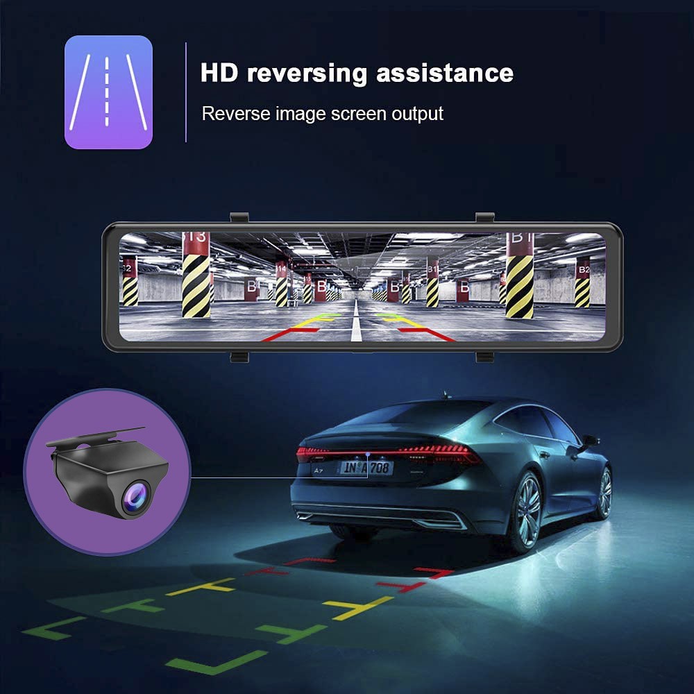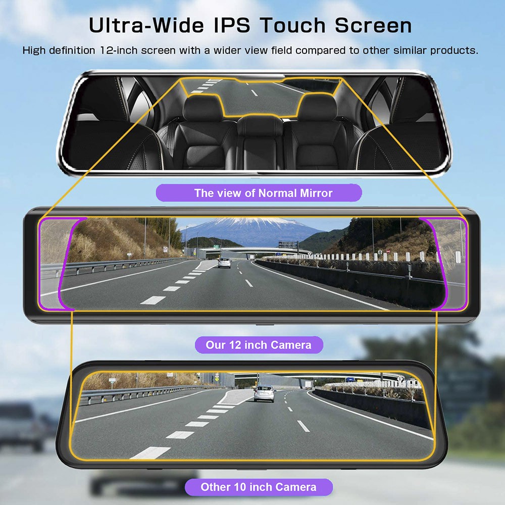 EKLEVA 12 Inch Touch Car DVR 4K 1080P Mirror Dash Cam Dual Lens Waterproof Rear Camera Car RearView Mirror Night Vision