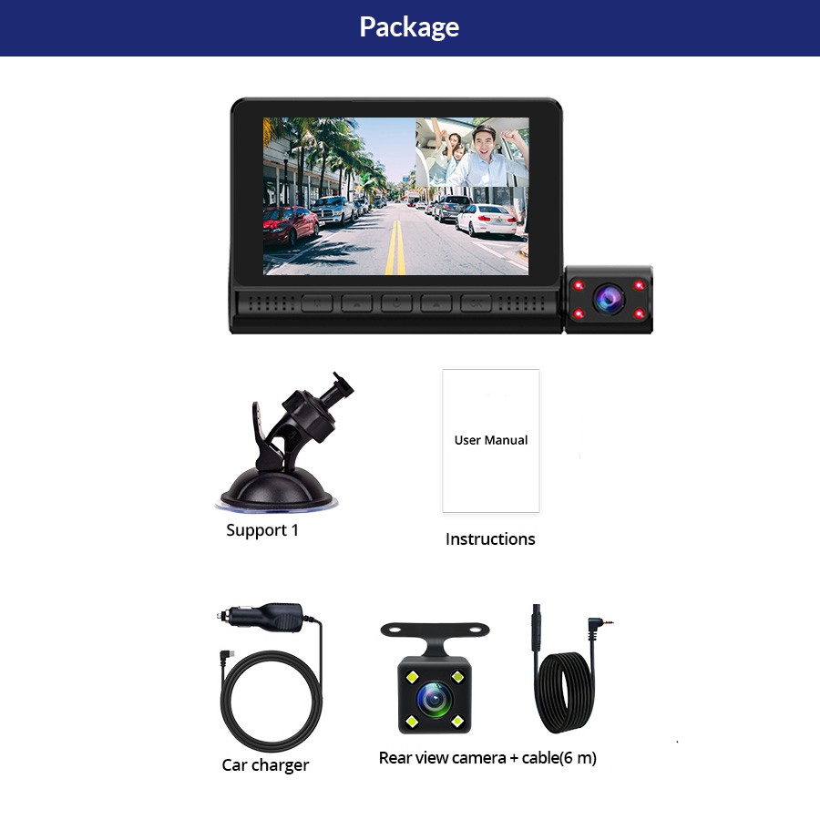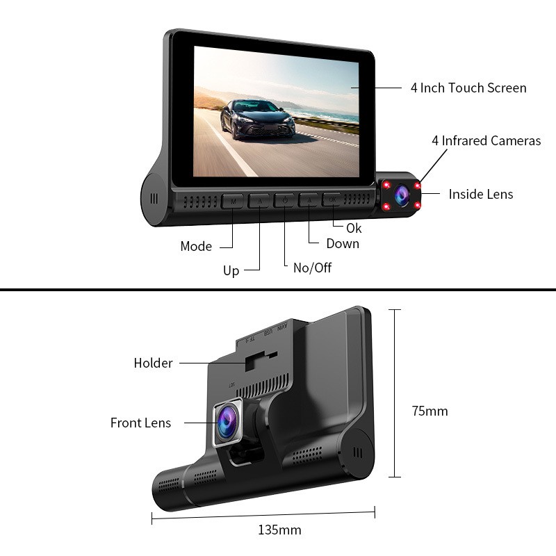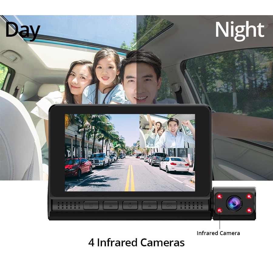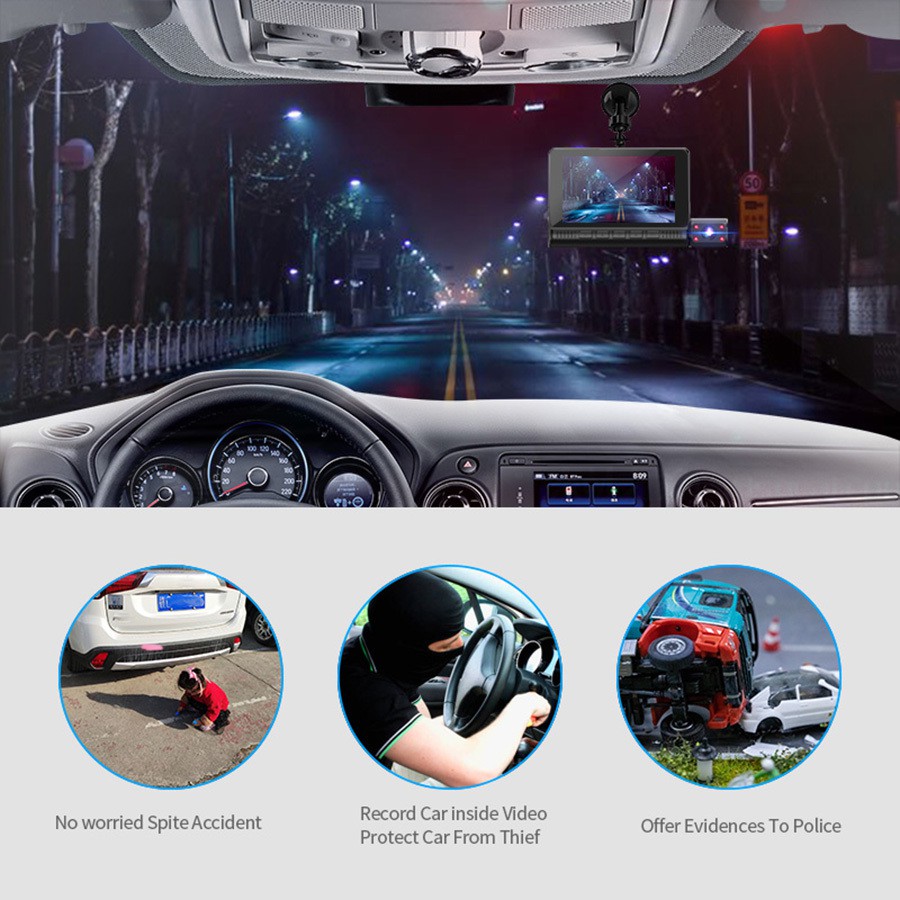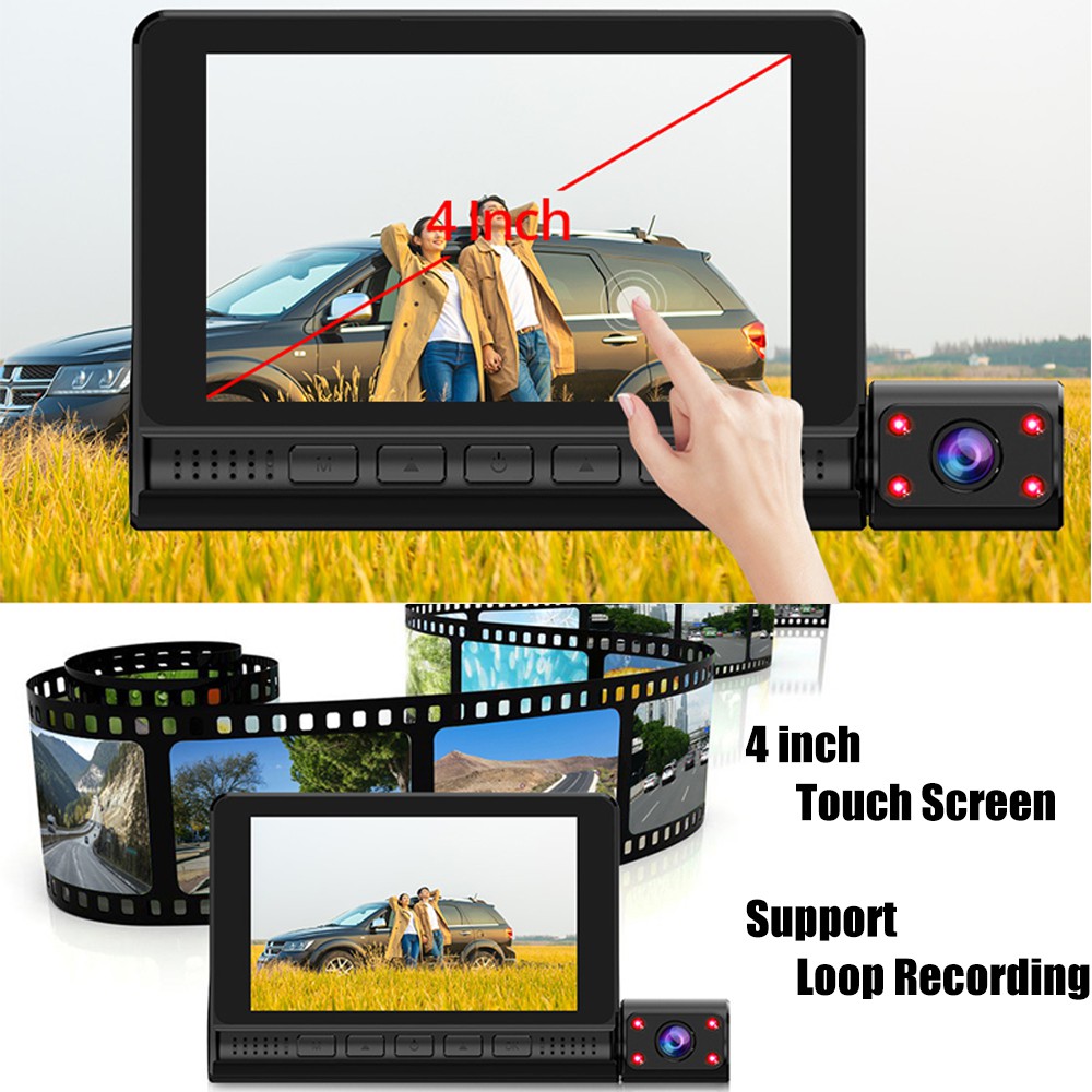 Ekleva 4 In 1 3 Lens Dash Cam Touch Screen 170 Degree Hd 1080p Car Camera Dvr Recorder Loop Recording Parking Monitoring