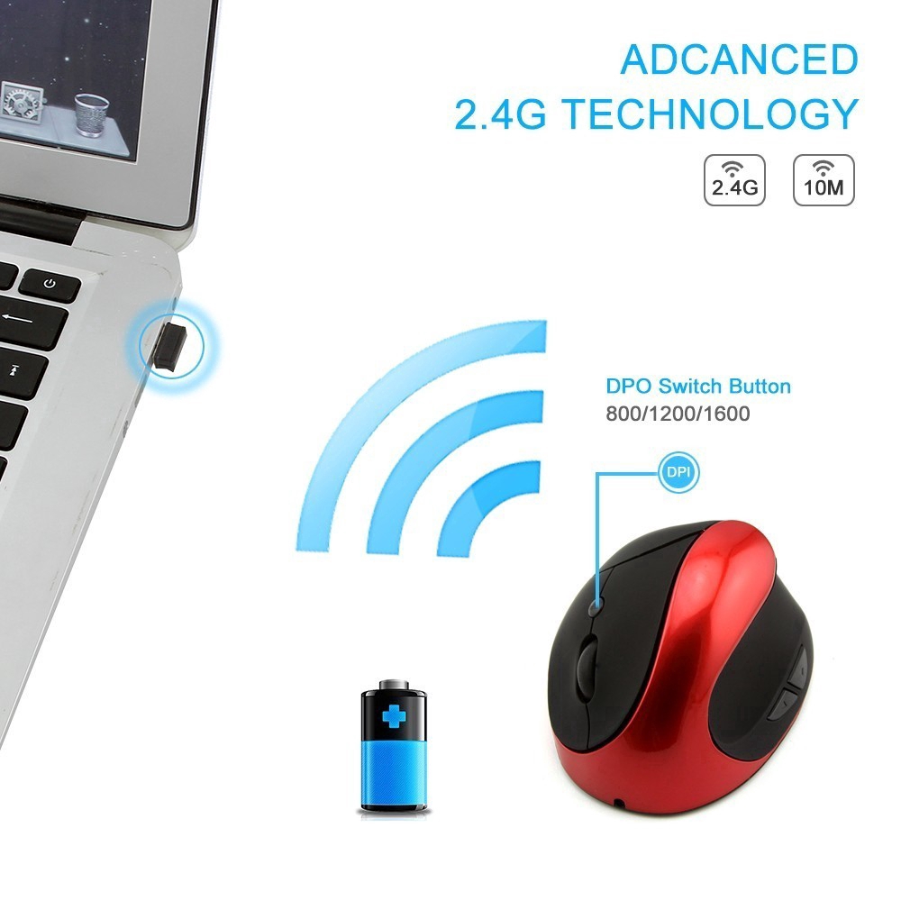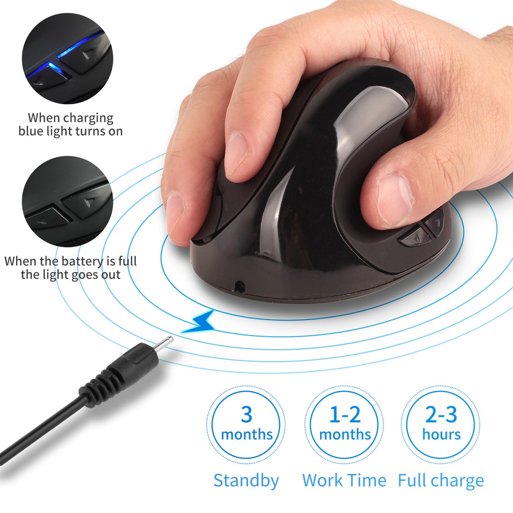 Elec Space Wireless Vertical Rechargeable Mouse Ergonomic Optical USB Mice 1600DPI Right Hand Gaming Mouse For Laptop Tablet Office PC Accessories