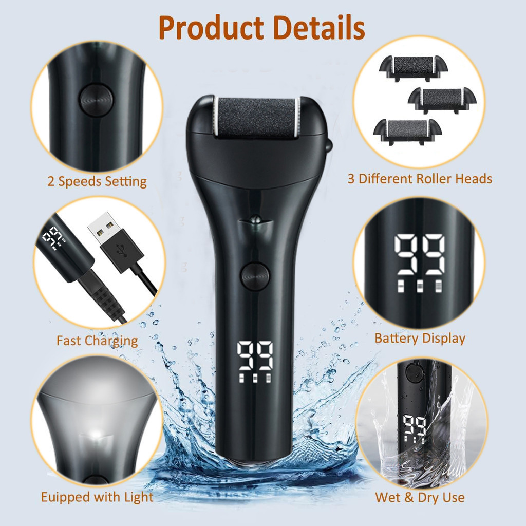 Electric Callus Remover Foot Spa Set Foot Care Scrub Set LED Dead Skin Remover Pedicure Tools Set Foot Scrub Callus Remover Foot File Grinder