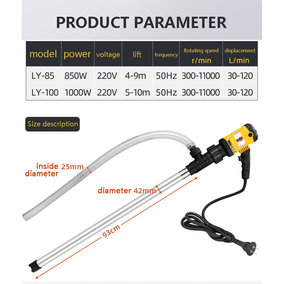 Electric Oil Pump 850W/1000W Oil drum pumping device Diesel, Engine oil, Hydraulic oil pumping unit