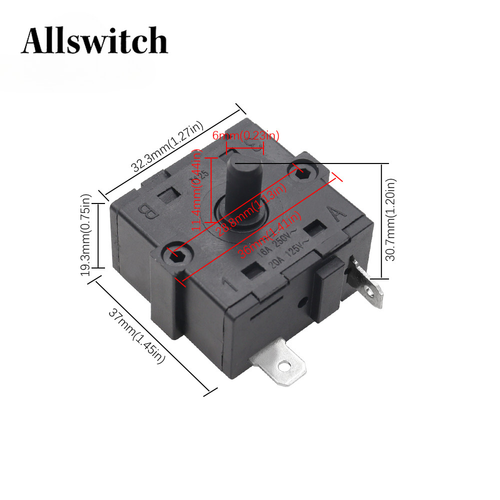 Electric Room Heater Position 2Pin 3Pin 5Pin Rotary Switch Selector AC 250V 16A Radiator