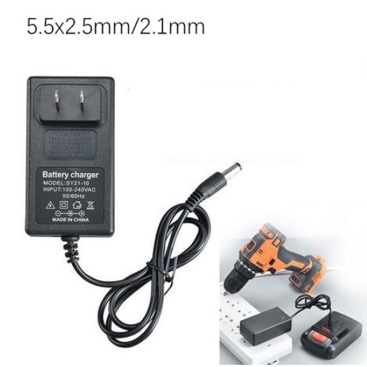 Electric drill charger compatible with 12V 16.8V 18V 21V 20VF-2000VF lithium battery charger 48VF universal(5.5mm dc port)