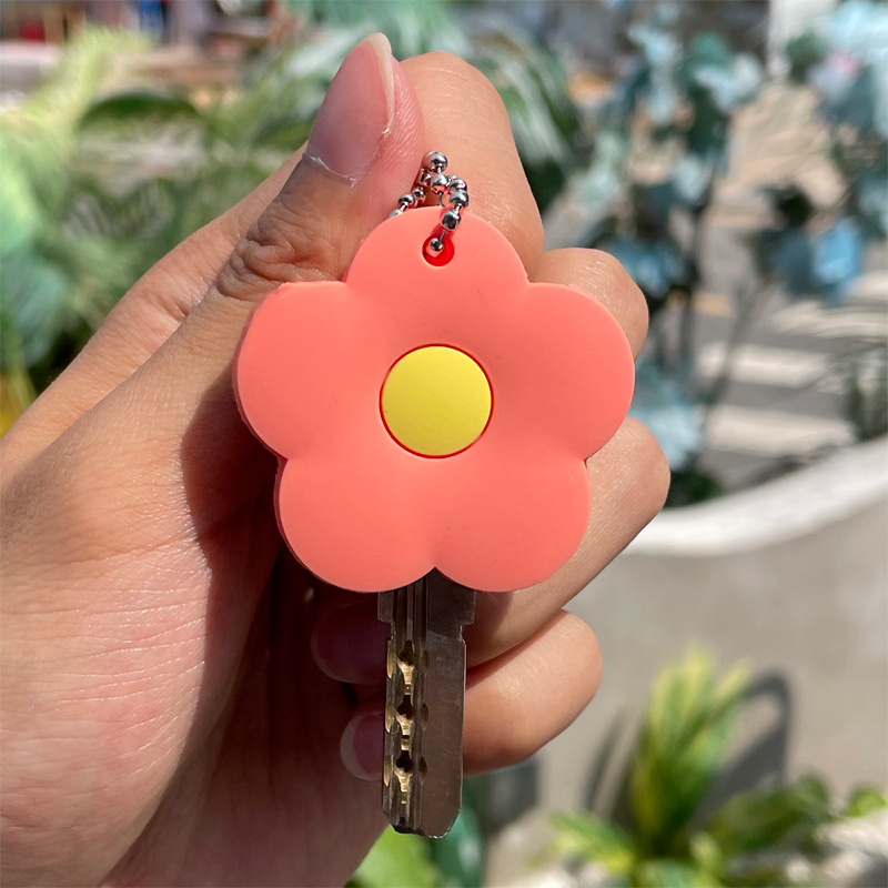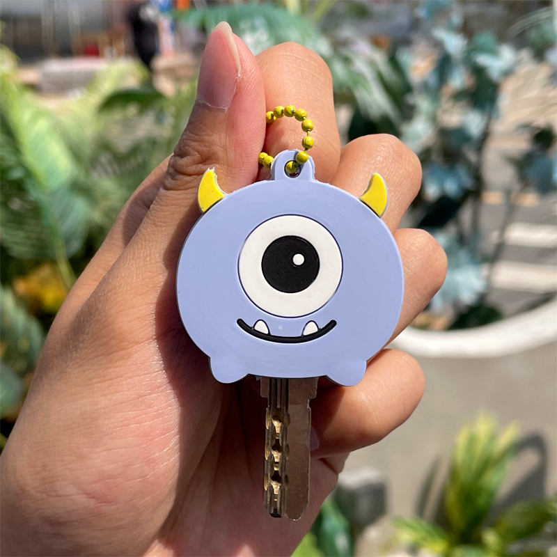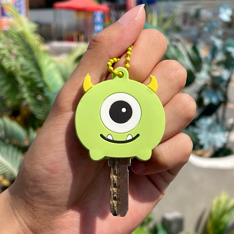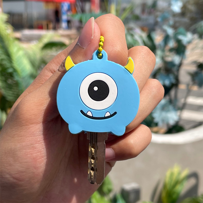 Electric vehicle silicone key holder cartoon cute creative keychain, home door key mechanical protective buckle