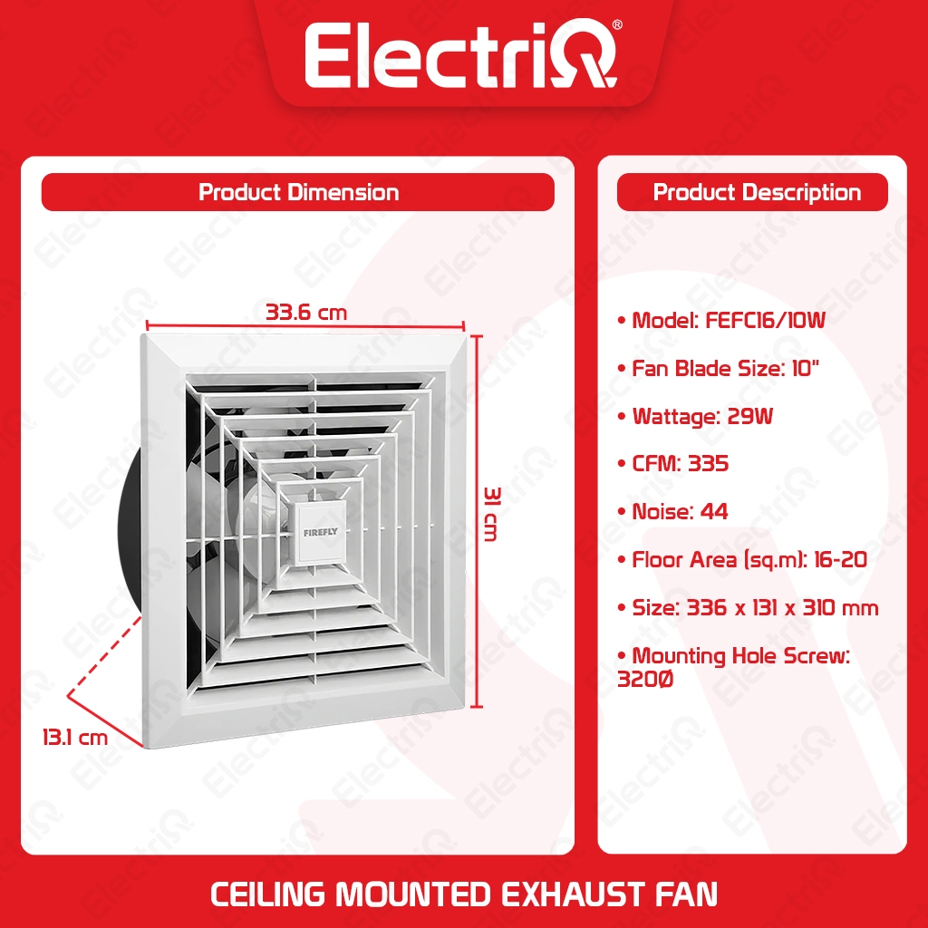 Electriq l Firefly 8 Inch / 10 Inch / 12 Inch Ceiling Mounted Exhaust Fan Wide Radial Grille 20W-35W