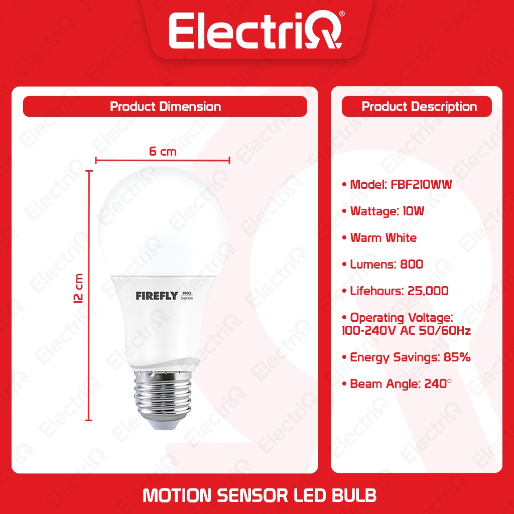 Electriq l Firefly LED Bulb Light Functional Motion Sensor 10W Day Light FBF210
