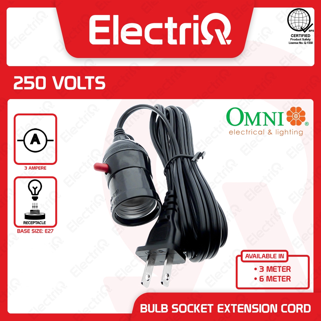 Electriq l Omni Push Through E27 Bulb Socket Extension Cord Power Cable 3/6M