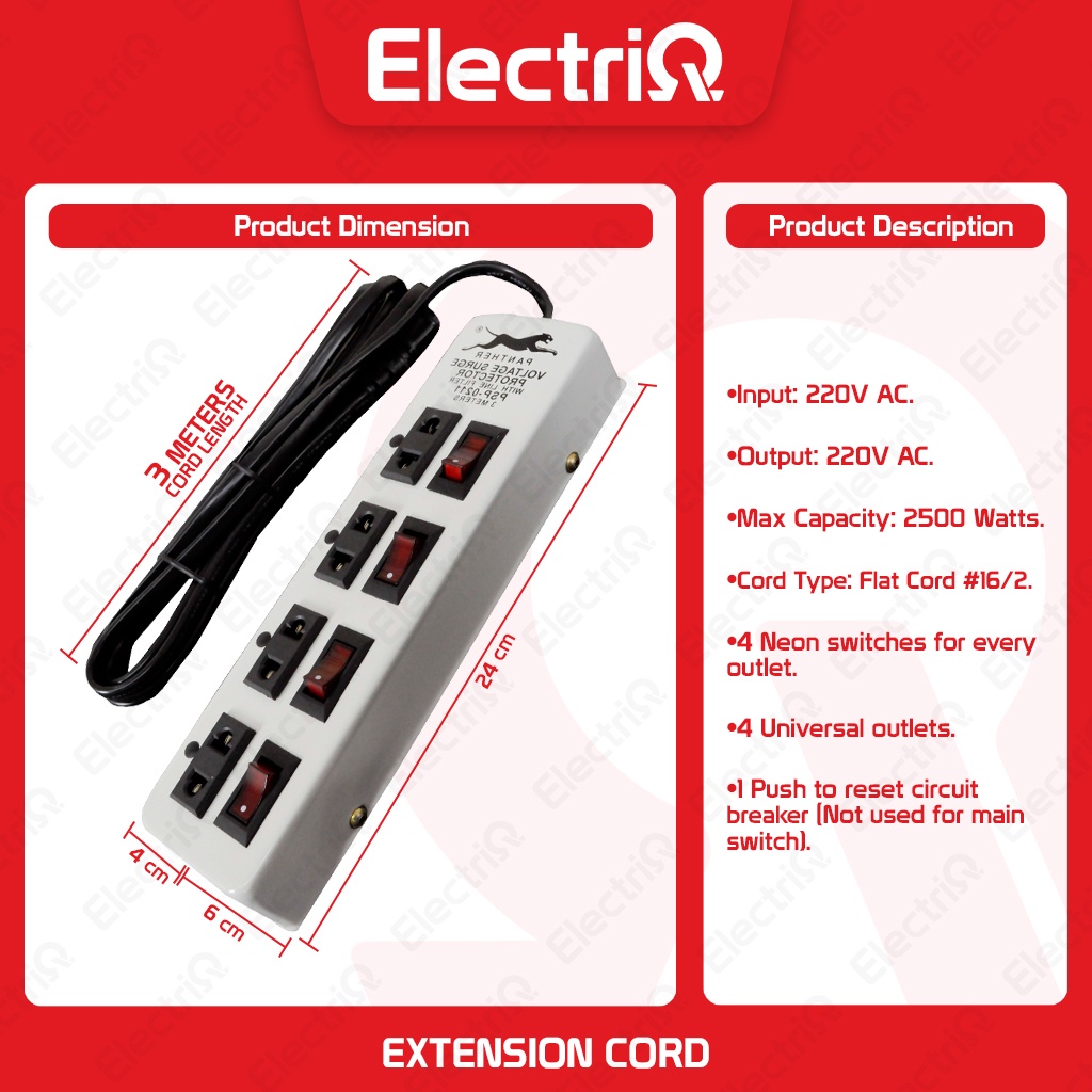 Electriq l Panther Power Extension Cord Cable Wire with Voltage Surge & Overload Protector PSP-0211