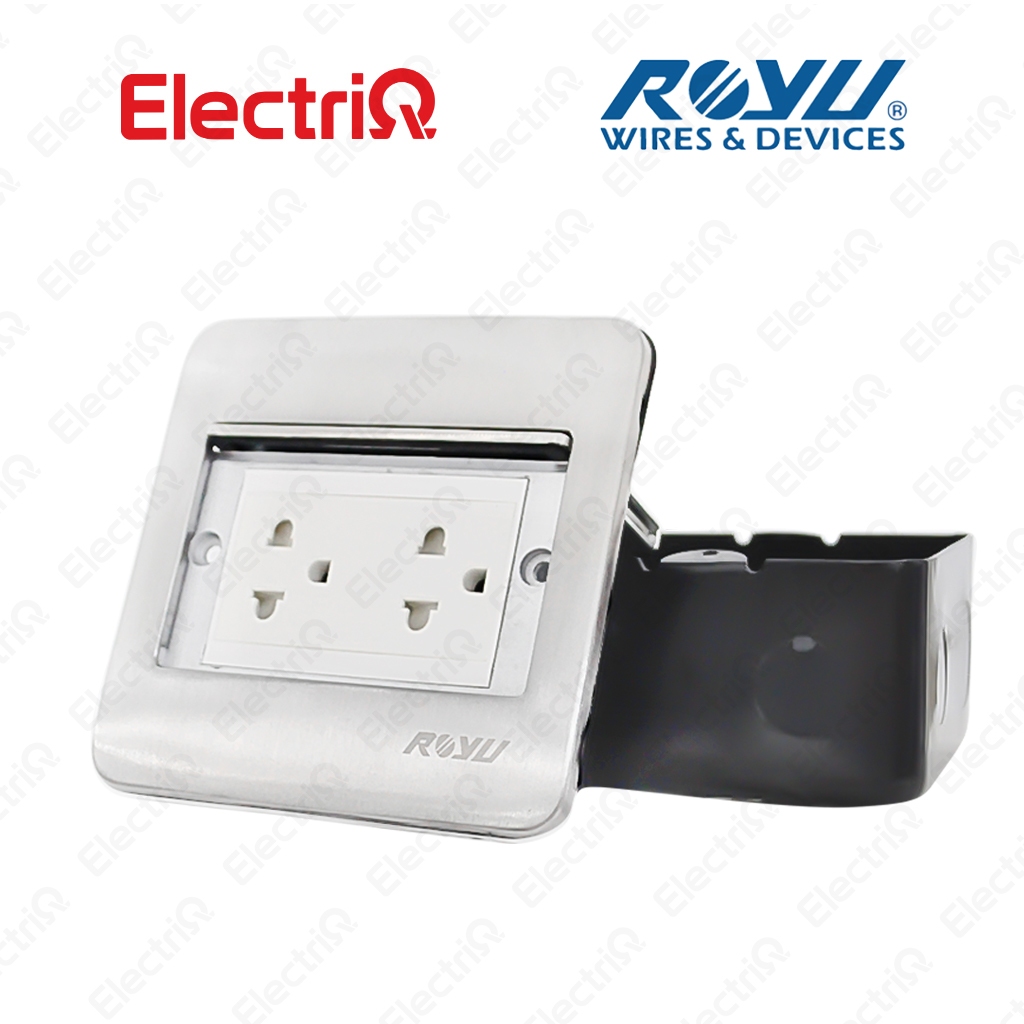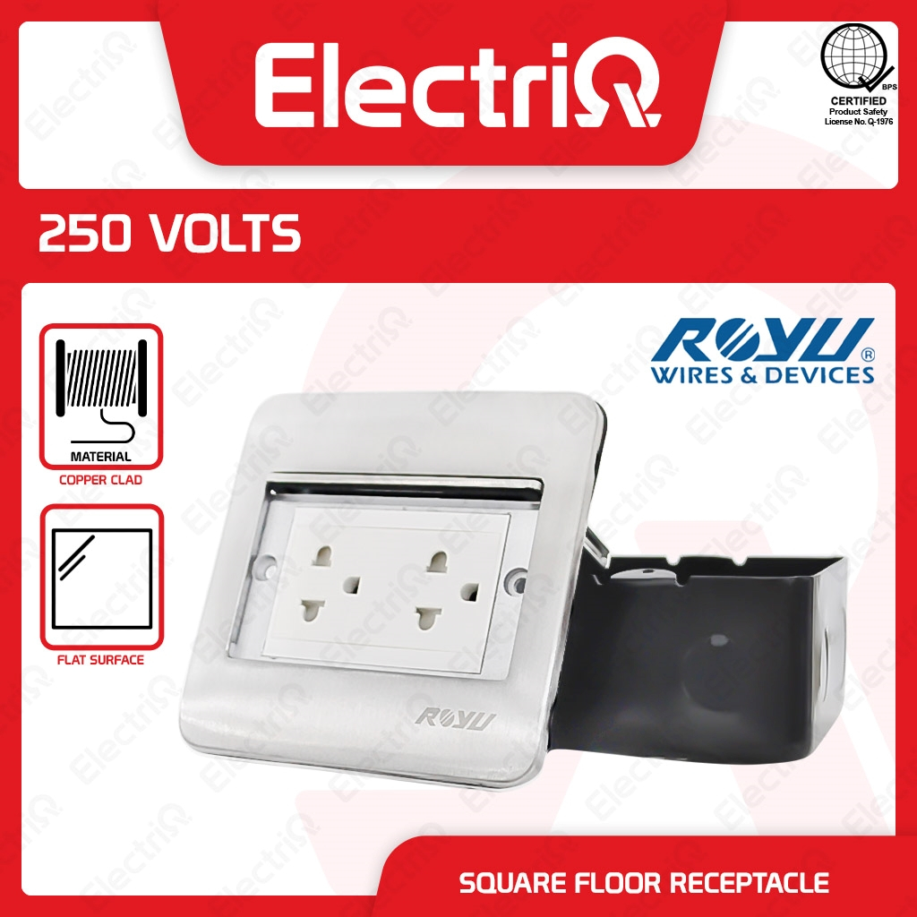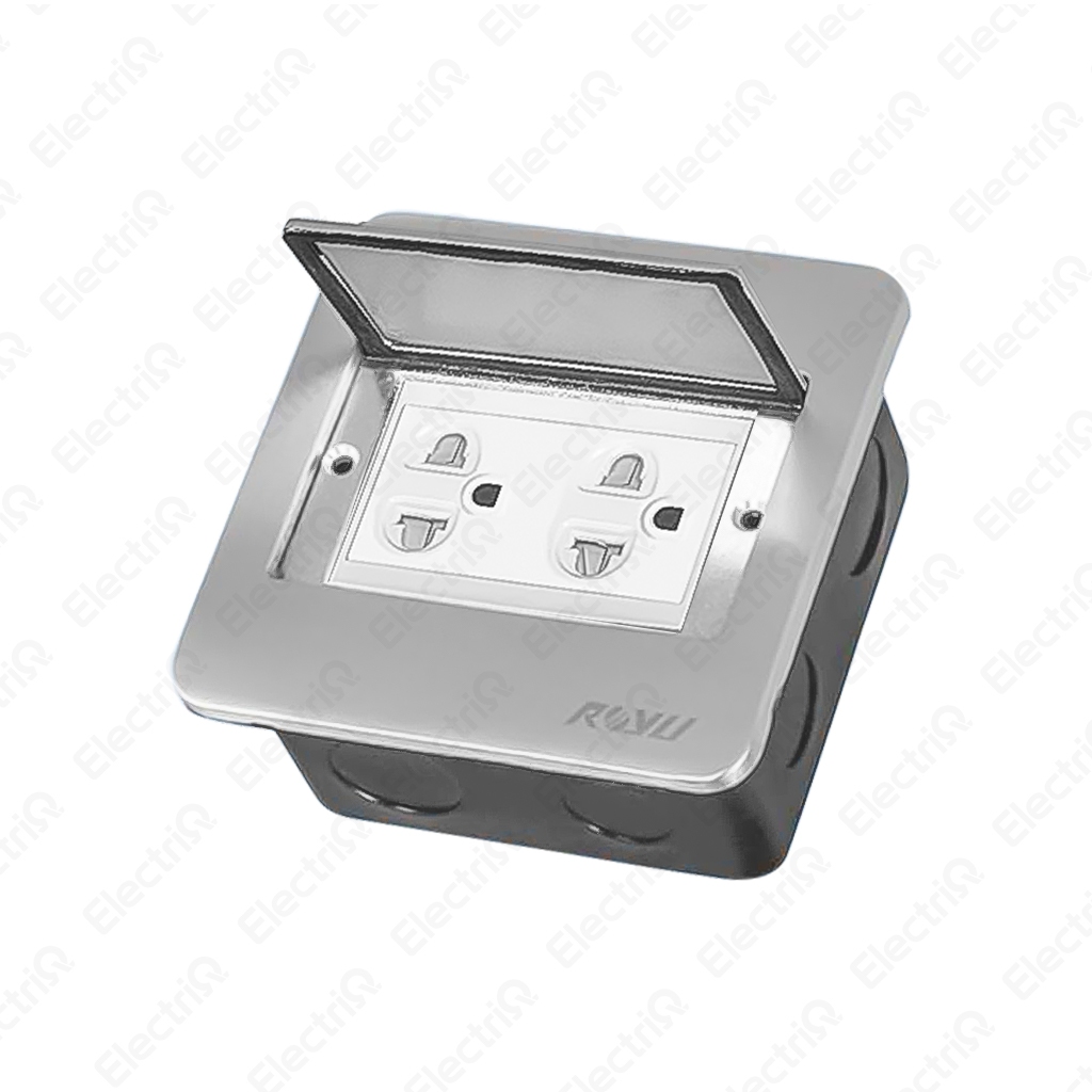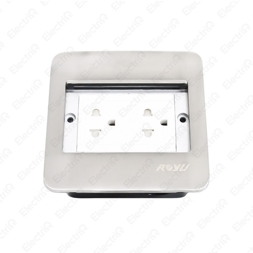 Electriq l Royu Square Floor Receptacle w/ Duplex Universal Outlet w/ Ground & Shutter RWF52