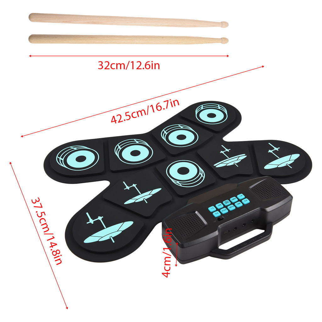 Electronic Drum Set Hand Roll Drum Set 9 Pads Dual Speaker Rechargeable Holiday Birthday Gift Practice Pad Drum Kit with Drumsticks Foot Pedal Supports Connection MIDI Gaming