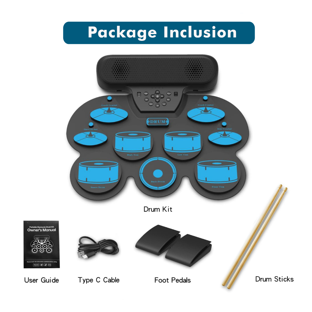 Electronic Drum Set Portable Drum Set Volume Control Electric Drum Set MIDI Drum Pad with Speaker