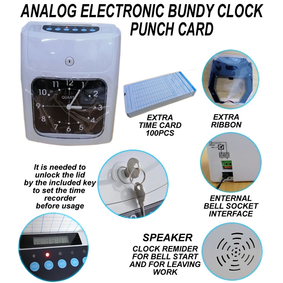 Electronic Employee Time Clock Recorder Attendance Machine Or Punch Card, Bundy Clock with Battery