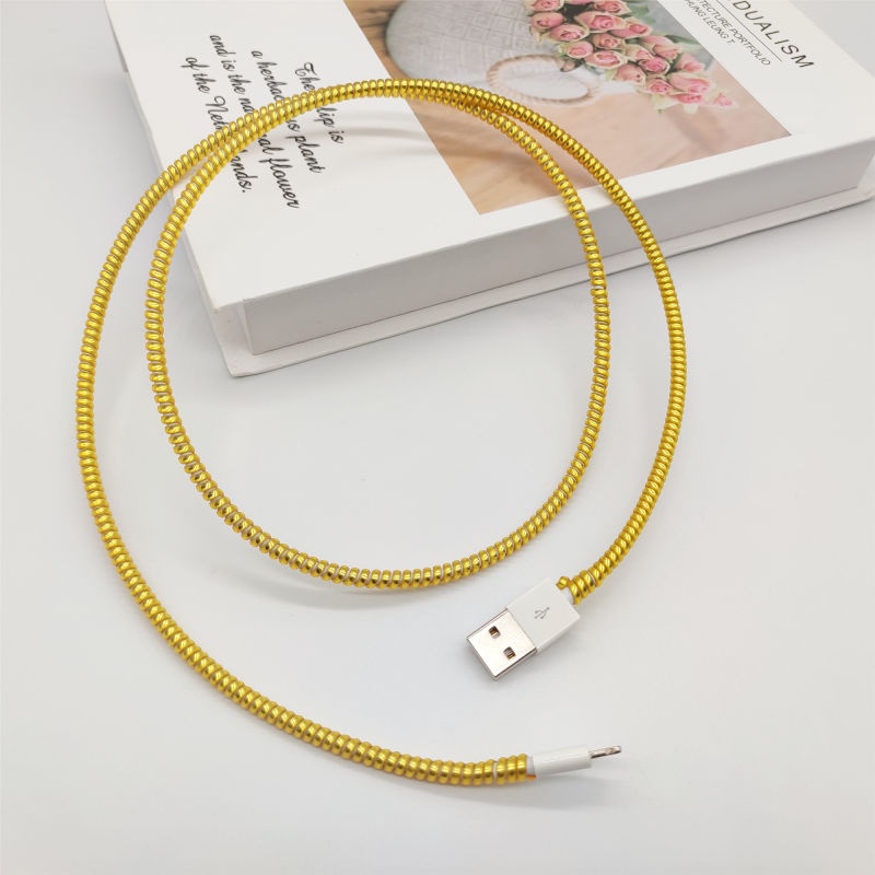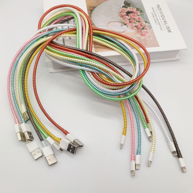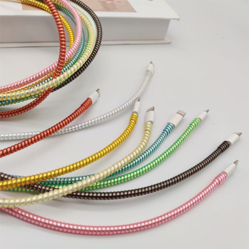 Electroplating color 140cm/55inches Spiral Earphone Cord Protector Charging Cable Protector charger cord protective