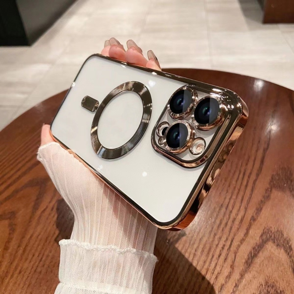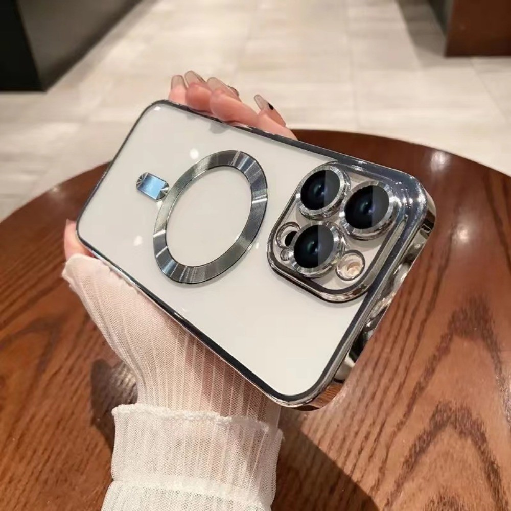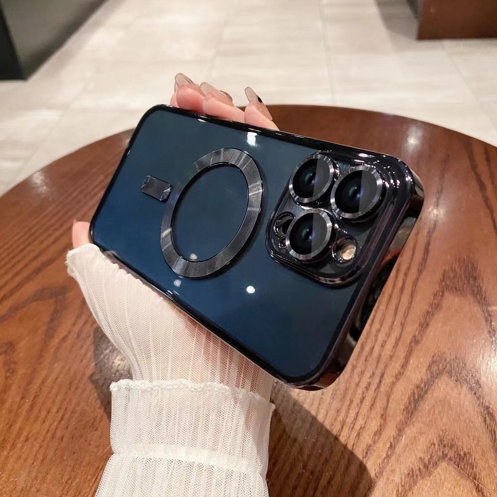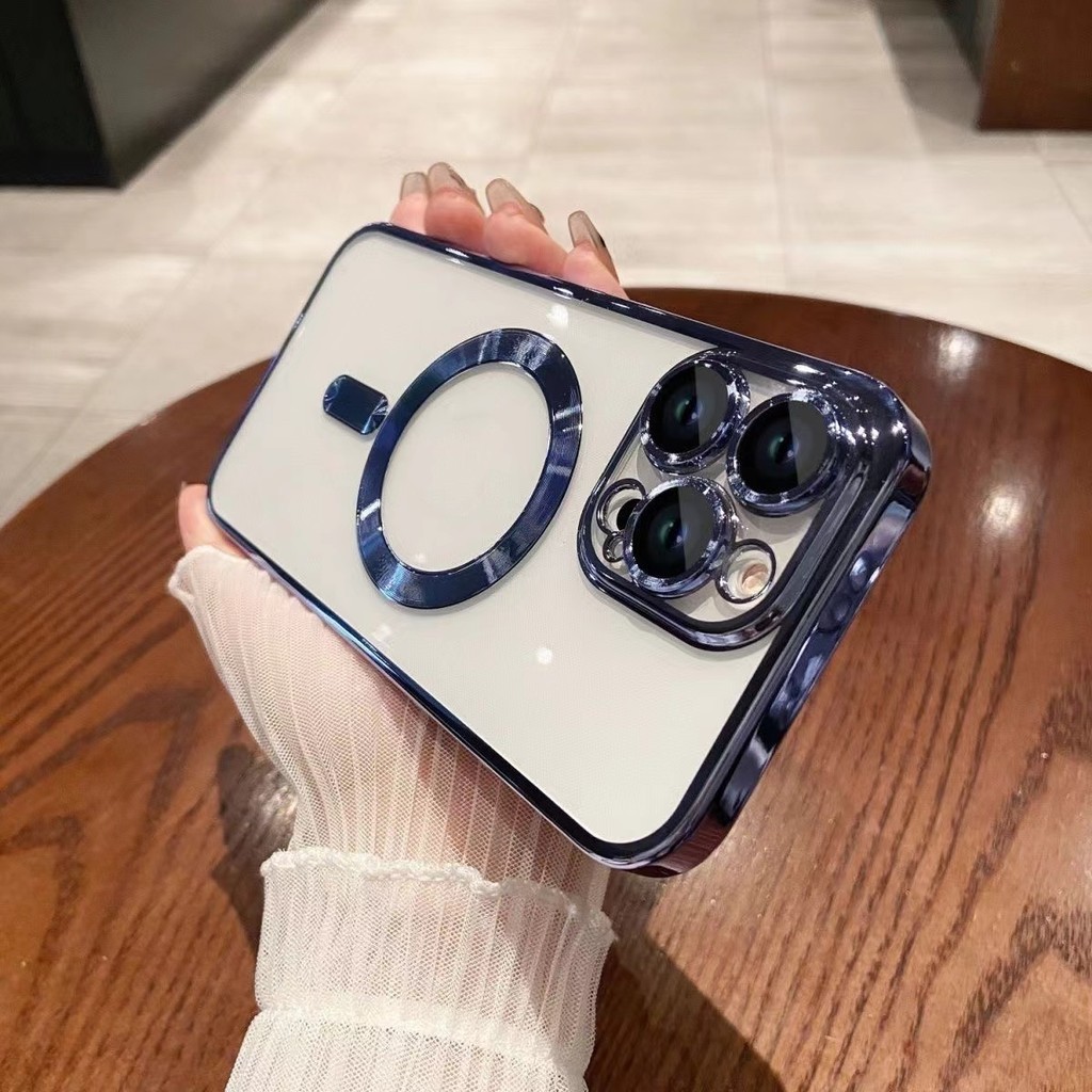 Electroplating luxury wireless charging transparent magnetic phone case compatible with iPhone 16 15 14 13 12 11 Pro Max 14Plus 15Plus 16Plus soft shockproof phone case magnetic tr