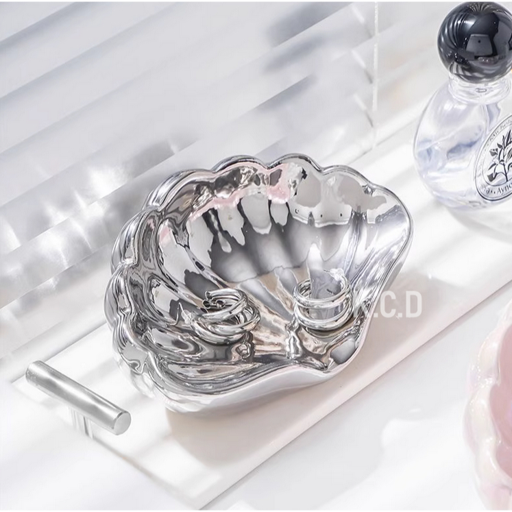 Elegant Ceramic Bathroom Soap Dish, Inspired by Nature Shell, Ceramic Soap Dish Holder, Self-Drainin