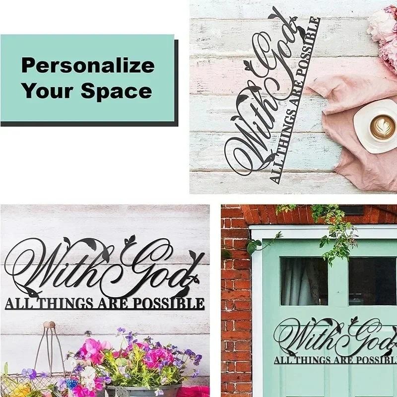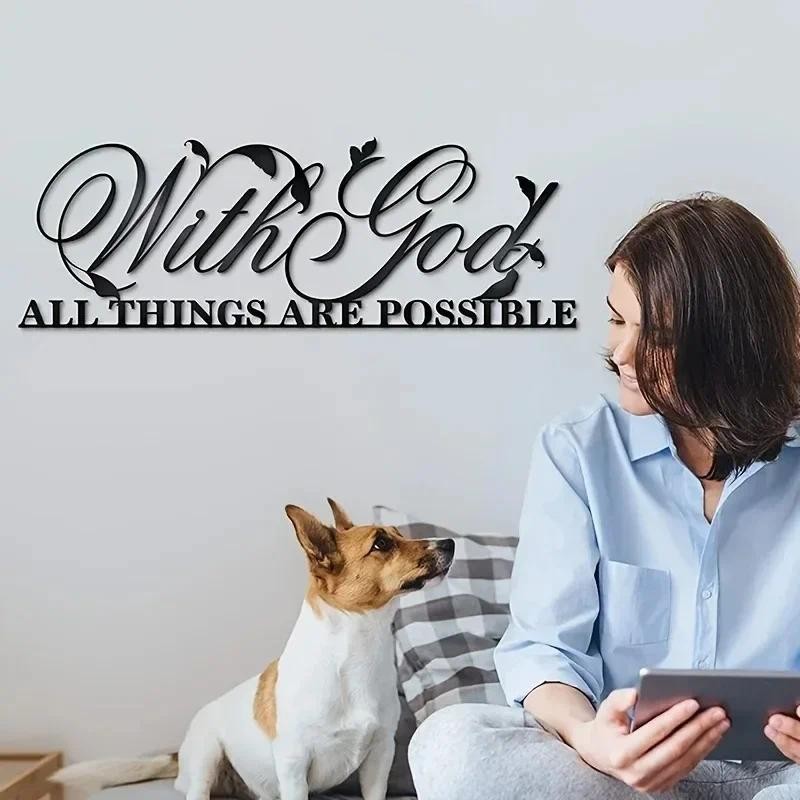 Elegant Metal Wall Art - 'With God All Things Are Possible' Bible Verse. Beautiful Metal Wall Sculpture and Inspirational Sign