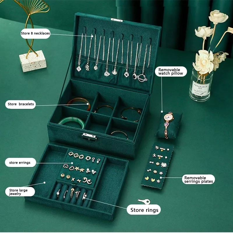 Elegant Velvet Jewelry Box Watch & Jewelry Organizers Waterproof Jewelry Storage Case Box With Lock