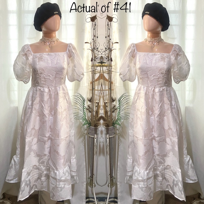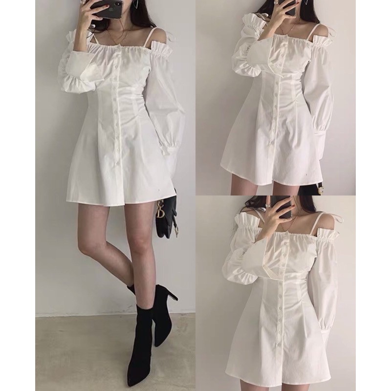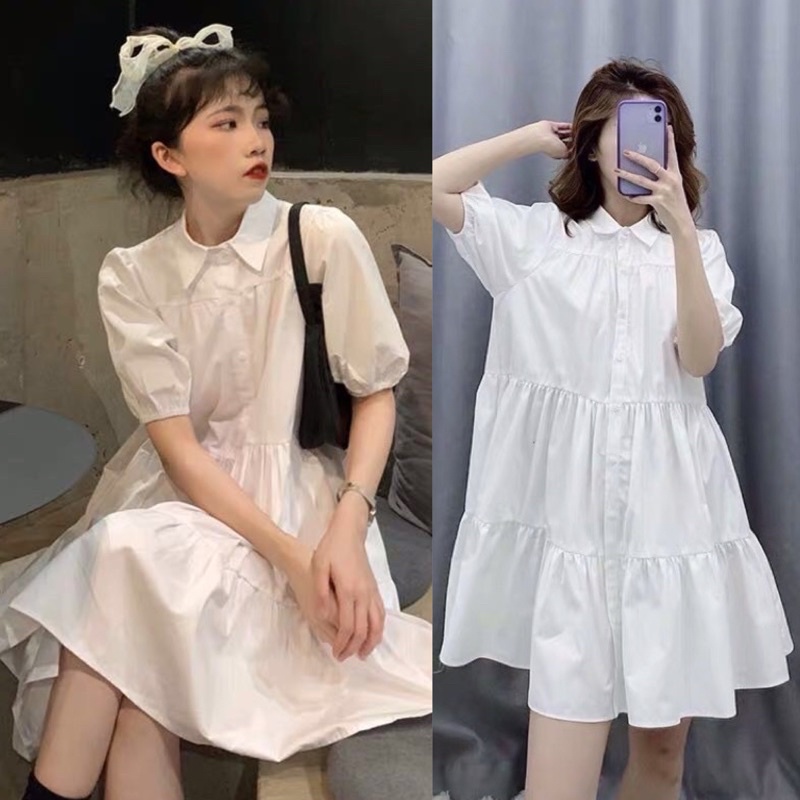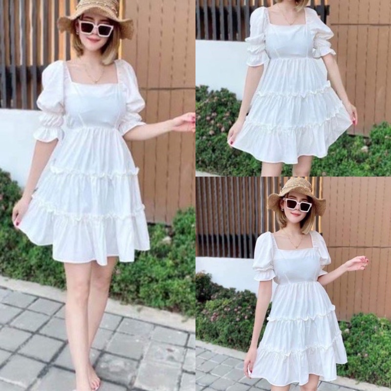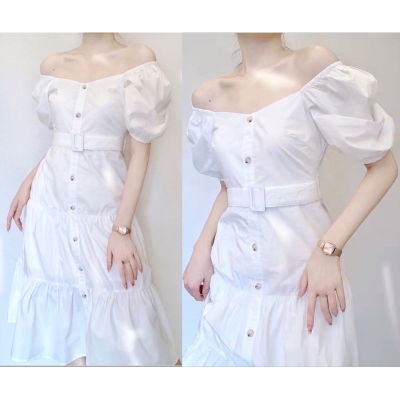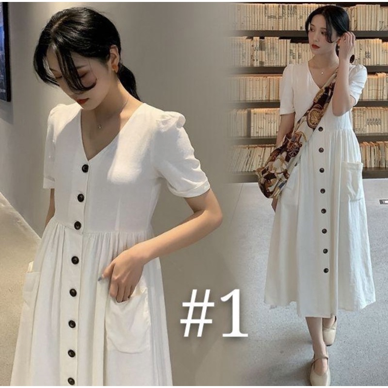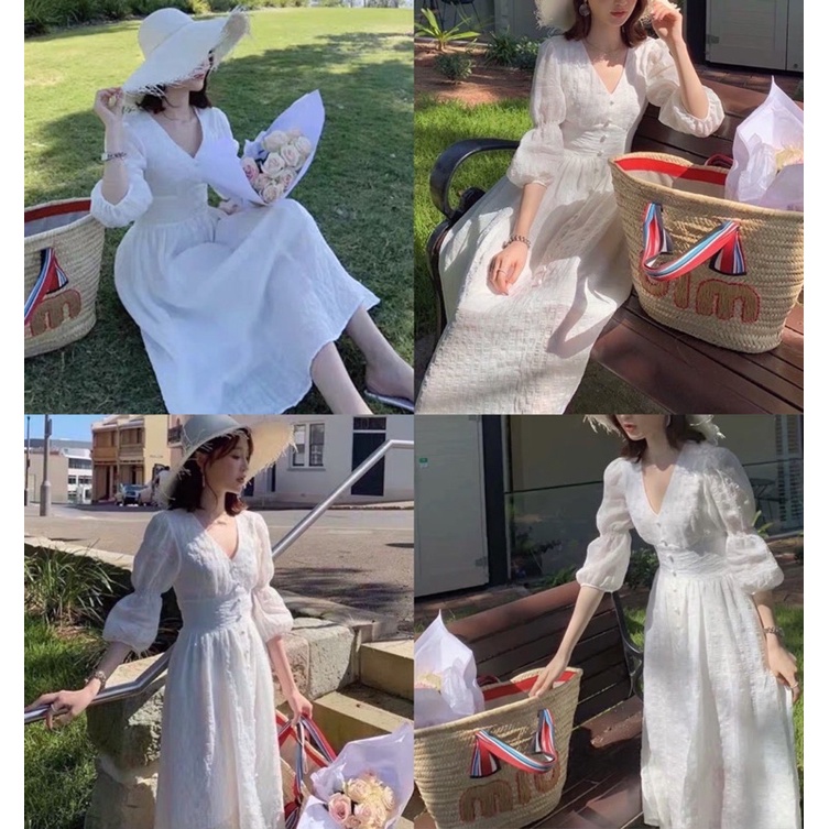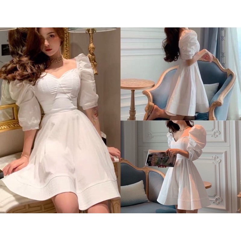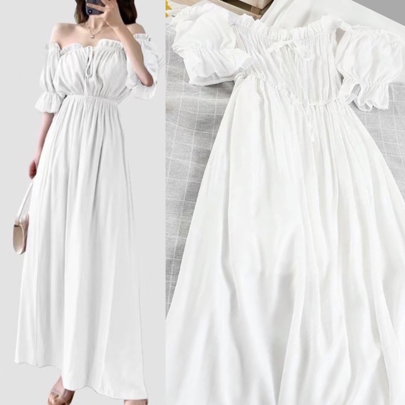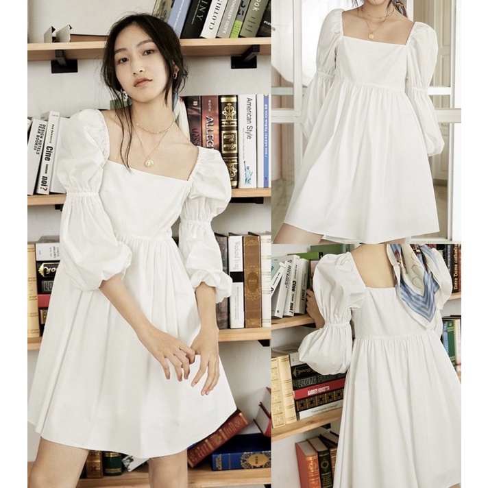 Elegant classy casual semi formal vintage puff sleeves white mini maxi dress
