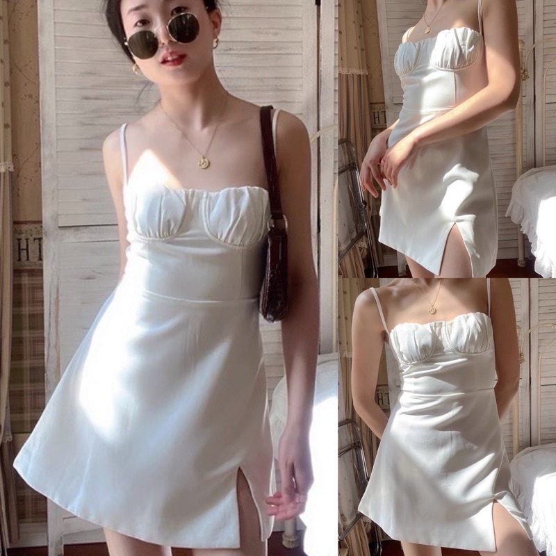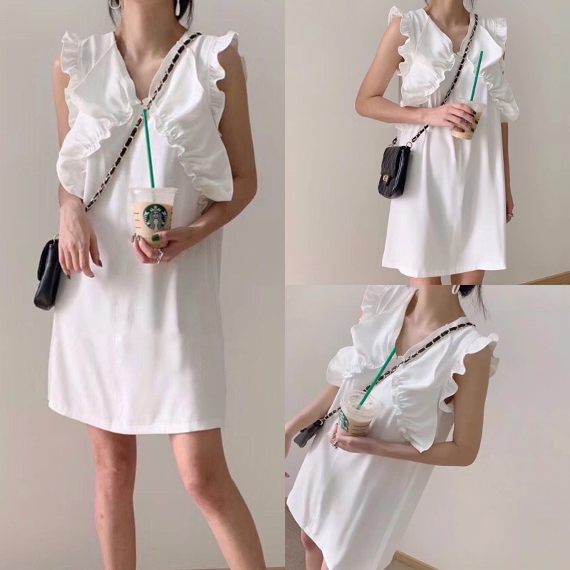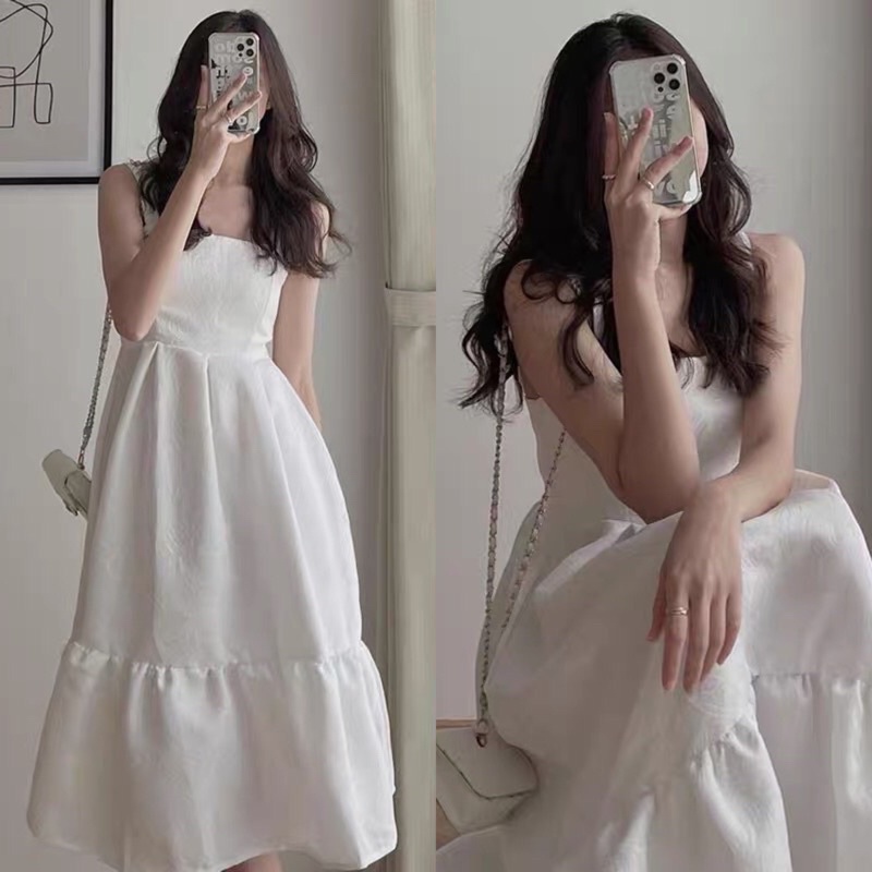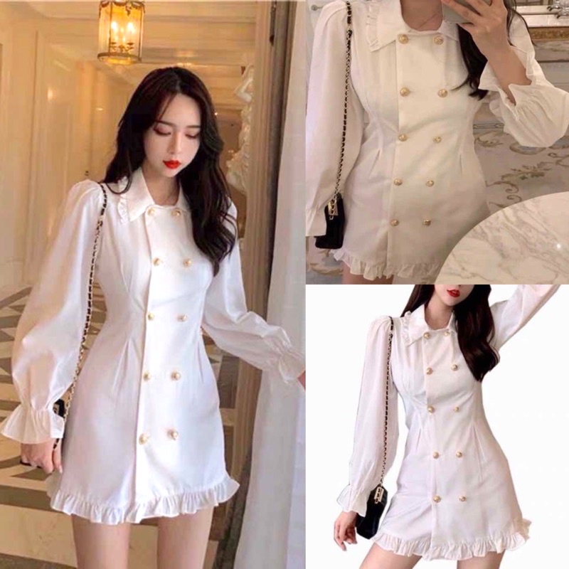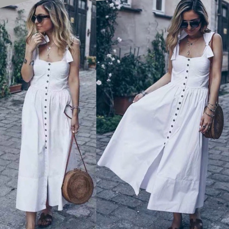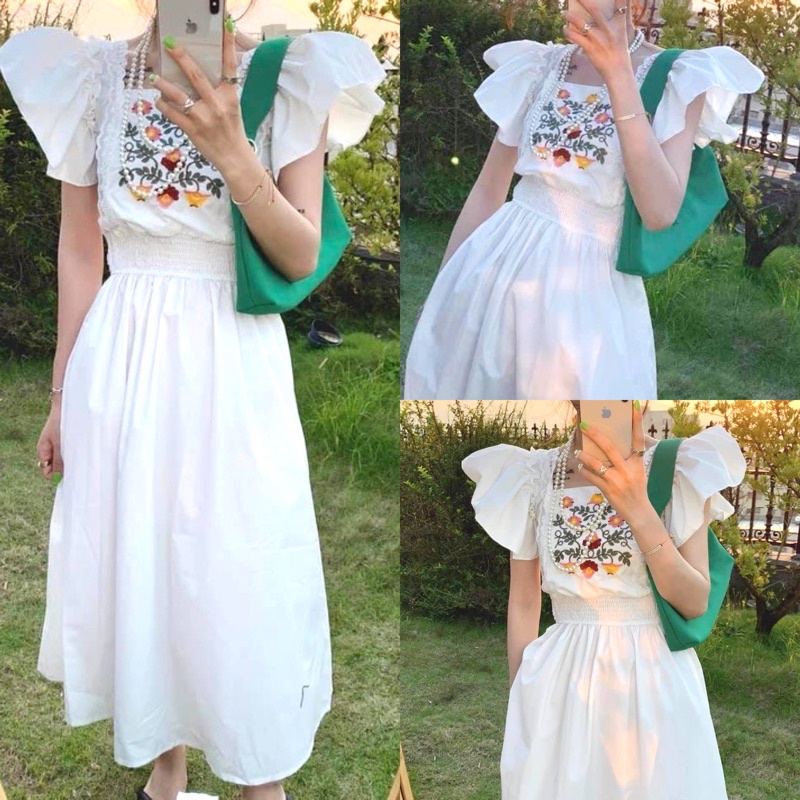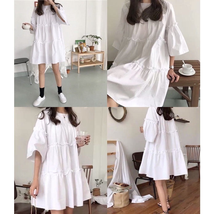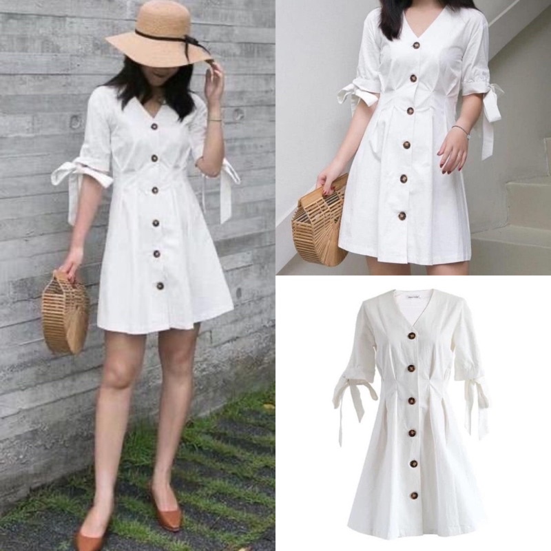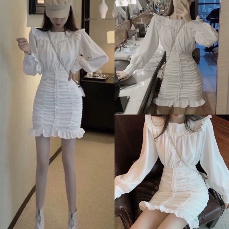 Elegant classy casual semi formal vintage puff sleeves white mini maxi dress