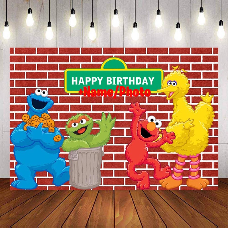 Elmo World Photography Backdrops Red Brick Wall Sesame Street Party Banner Photo Background for PicturesCustom Name Photo