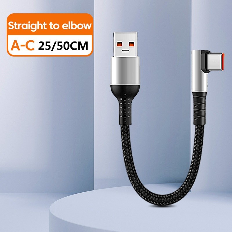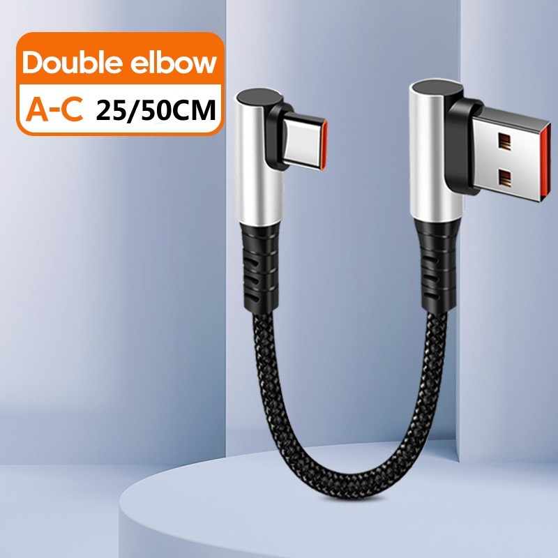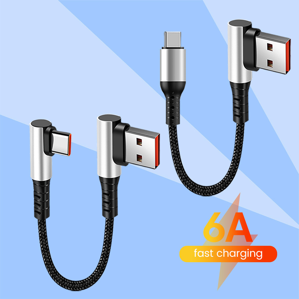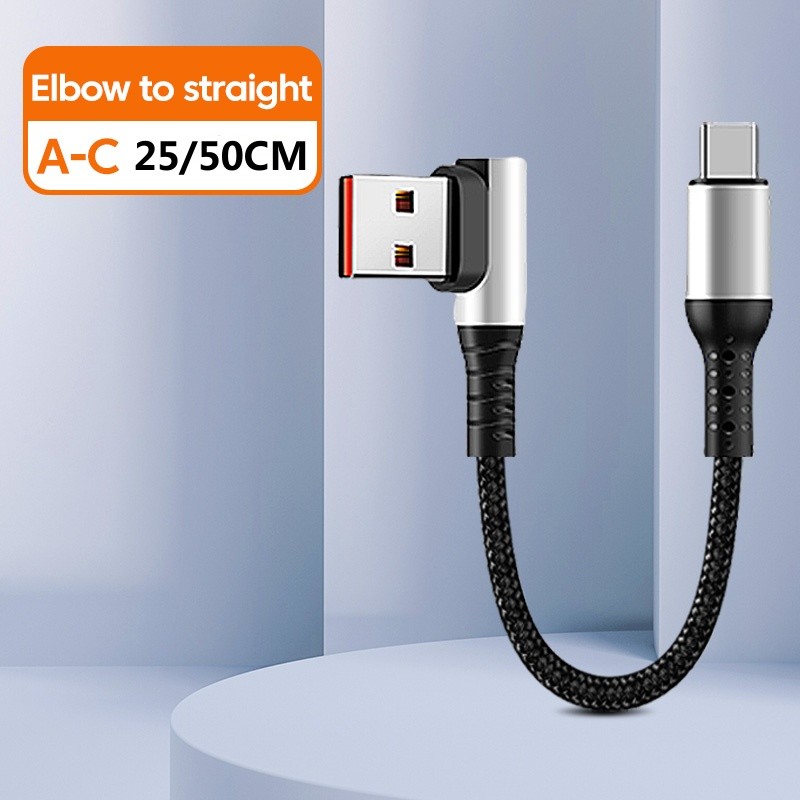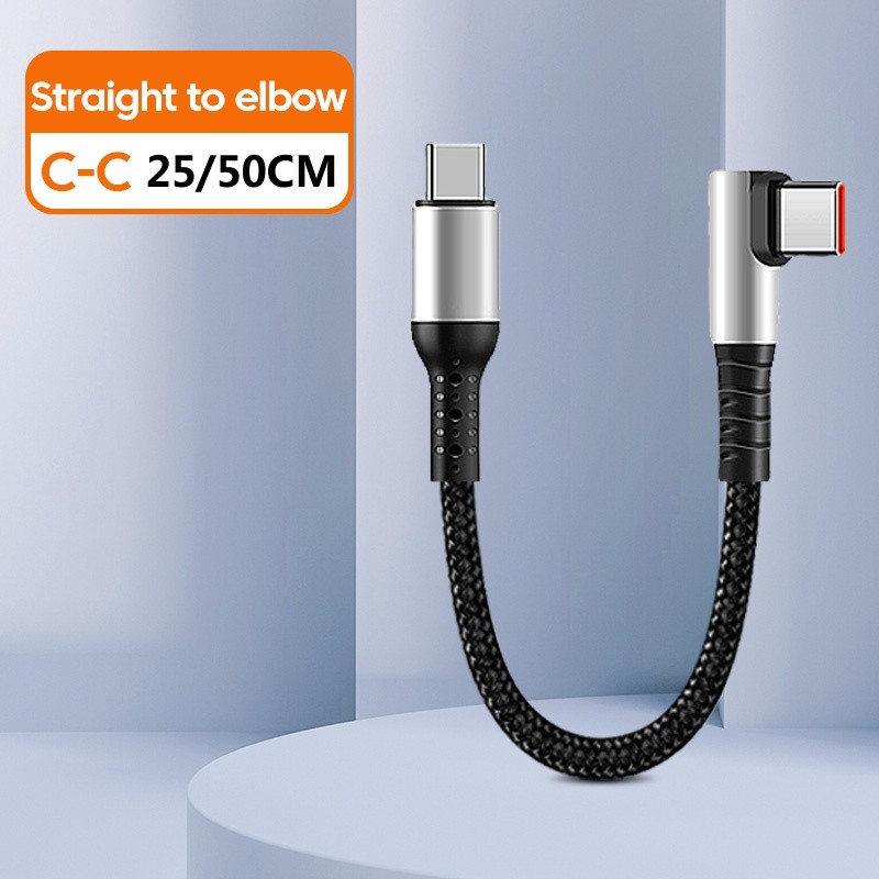 Elough 0.25M 0.5M Elbow/Straight USB to Type C Cable 6A Fast Charging Type C to Type C PD Data Cord Short Cable for Power Bank Mobile Phone