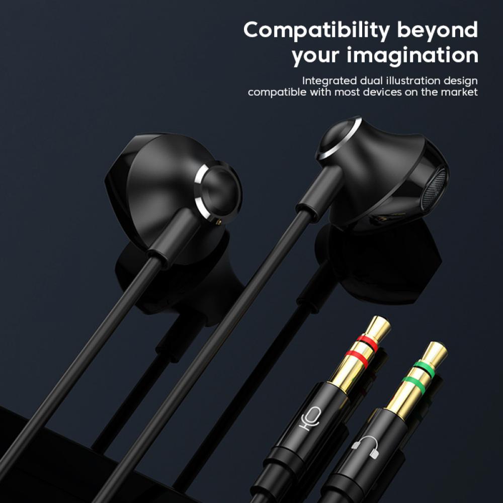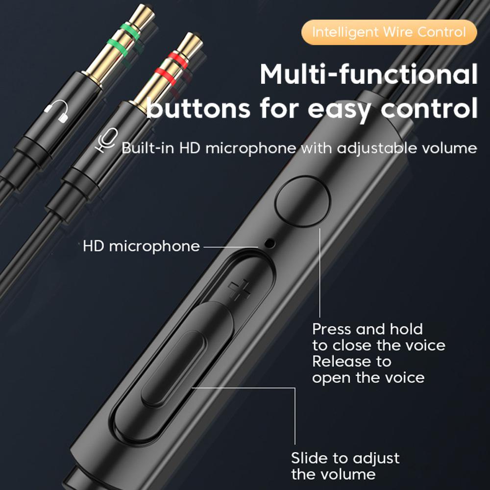 Elough Dual Plug Wired Earphones For Desktop Computer 2M/3M PC Earbuds 3.5MM In-ear Headset with Mic