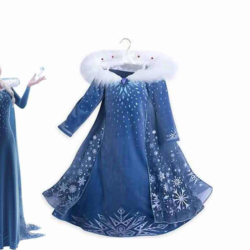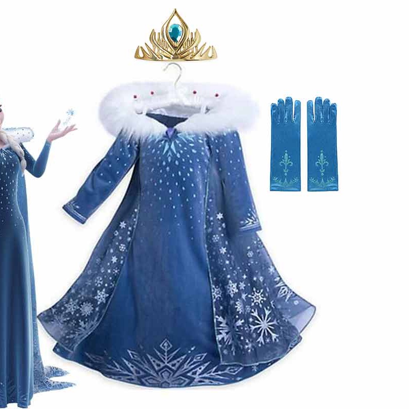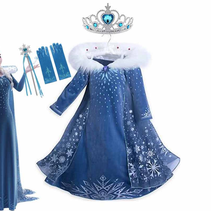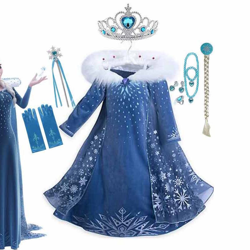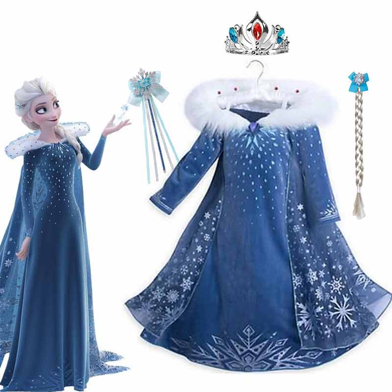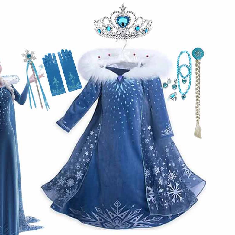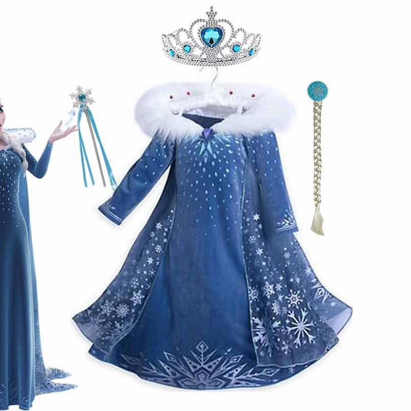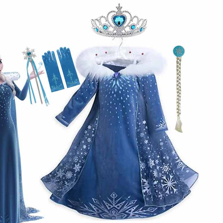 Elsa Winter Cosplay Costume for Girls Princess Party Queen Elsa Dress Kids Carnival Velvet Frocks Cl