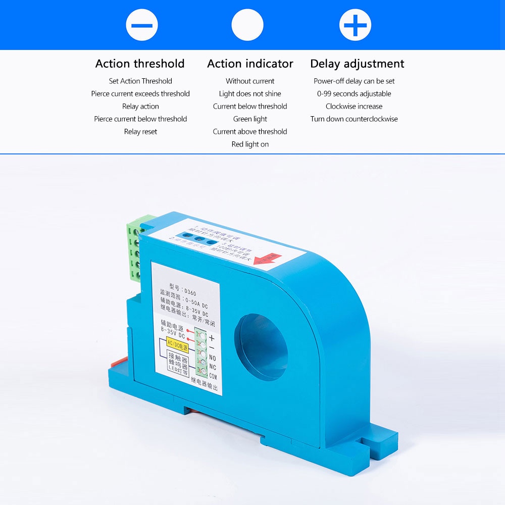 Embedded DC Current Sensing Switch Mutual Inductance Module Overload Protection Linkage Control Hall Sensor D360 0-50A/0-100A Detectable