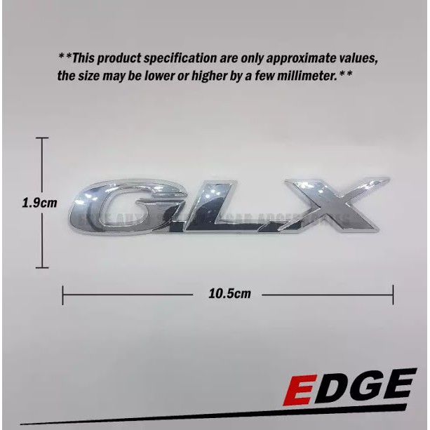 Emblem - GLX - Chrome - 1.8x10.5cm // mitsubishi adhesive ready sticker word stick-on decal logo