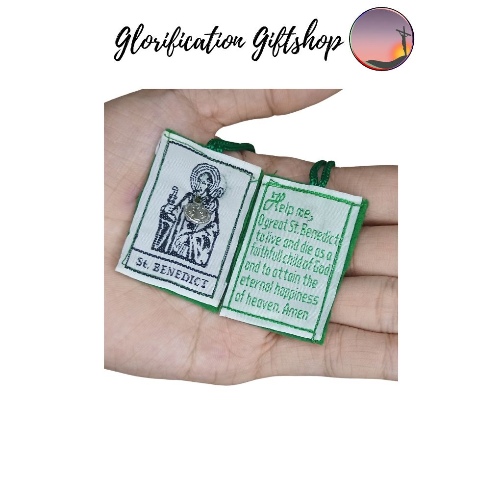 Embroidered Benedictine Scapular with attached small benedictine medal