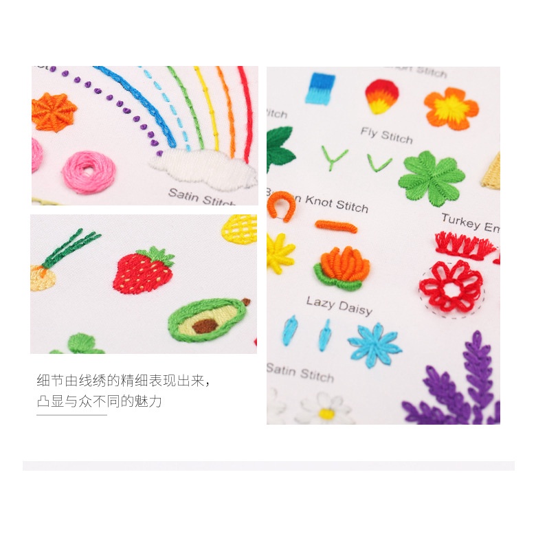 Embroidery kit, embroidery stitch practice pattern, can be used for students, community embroidery teaching, embroidery beginners material kit