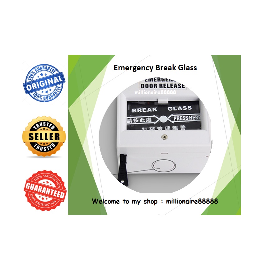 Emergency Door Break Glass Door Release (Green) for Door Access System - Em Lock System
