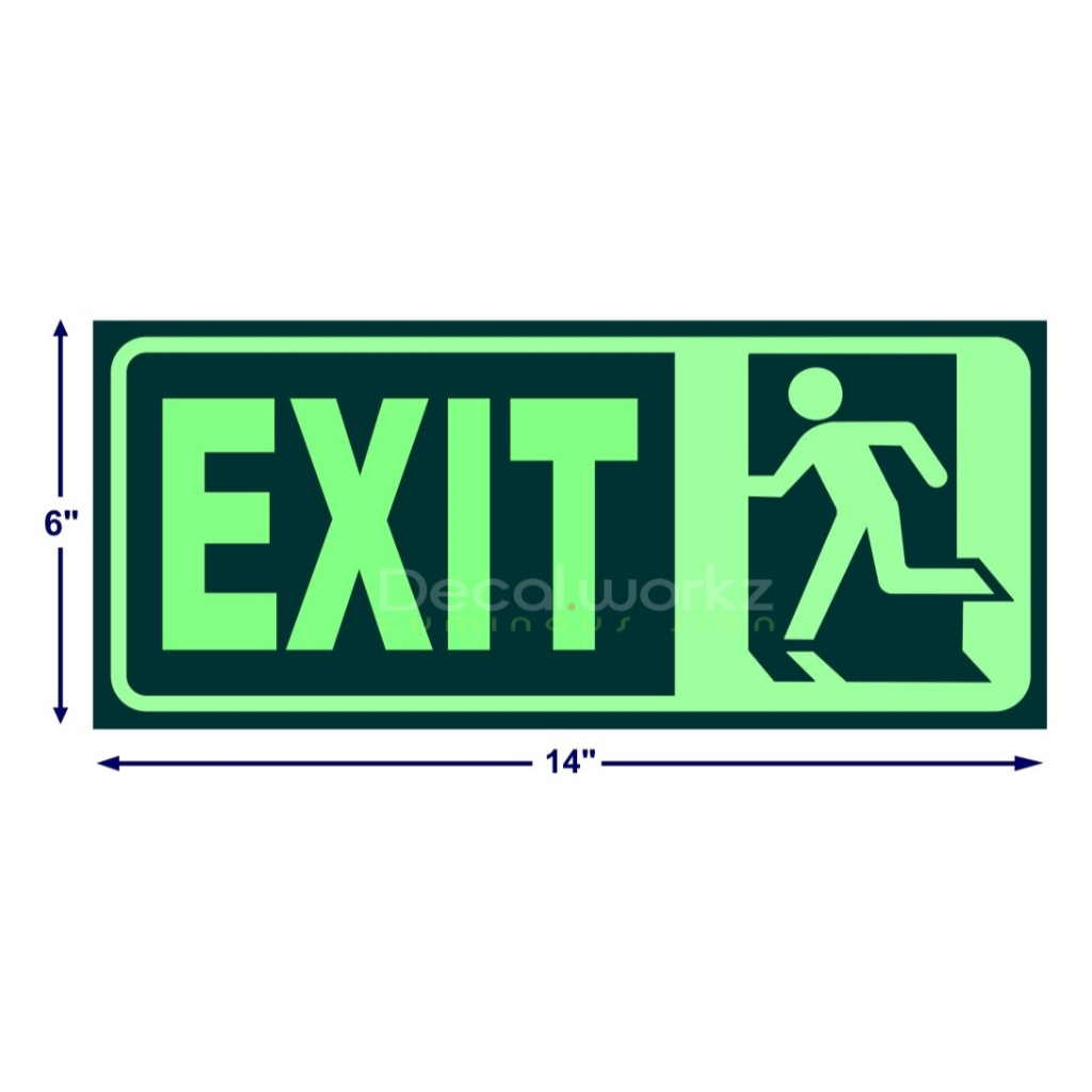 Emergency Exit Fire Extinguisher Sign Glow in the Dark / Luminous Cut Out Sticker in Sintra board.